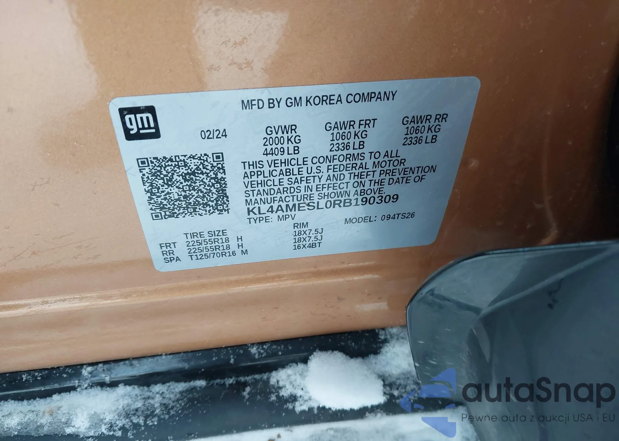 LOT: 44273595 VIN: KL4AMDSLXRB003796