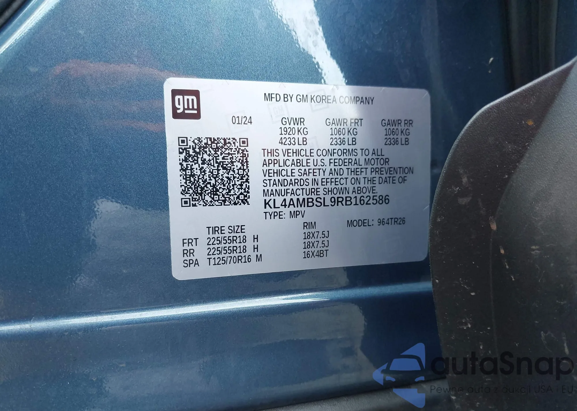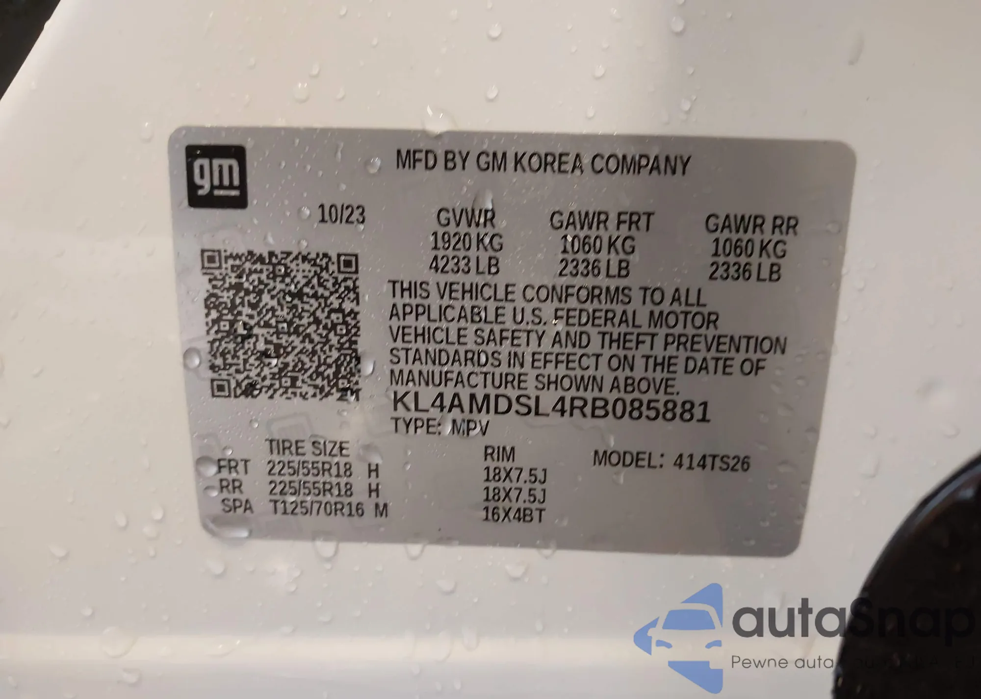 • VIN KL4AMDSL8TB005716