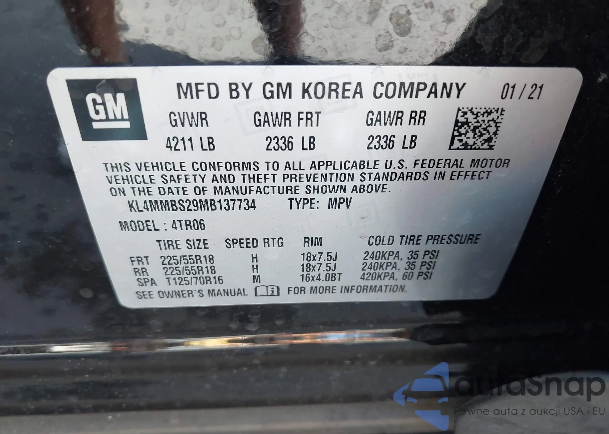 • VIN KL4MMCSLXLB065021