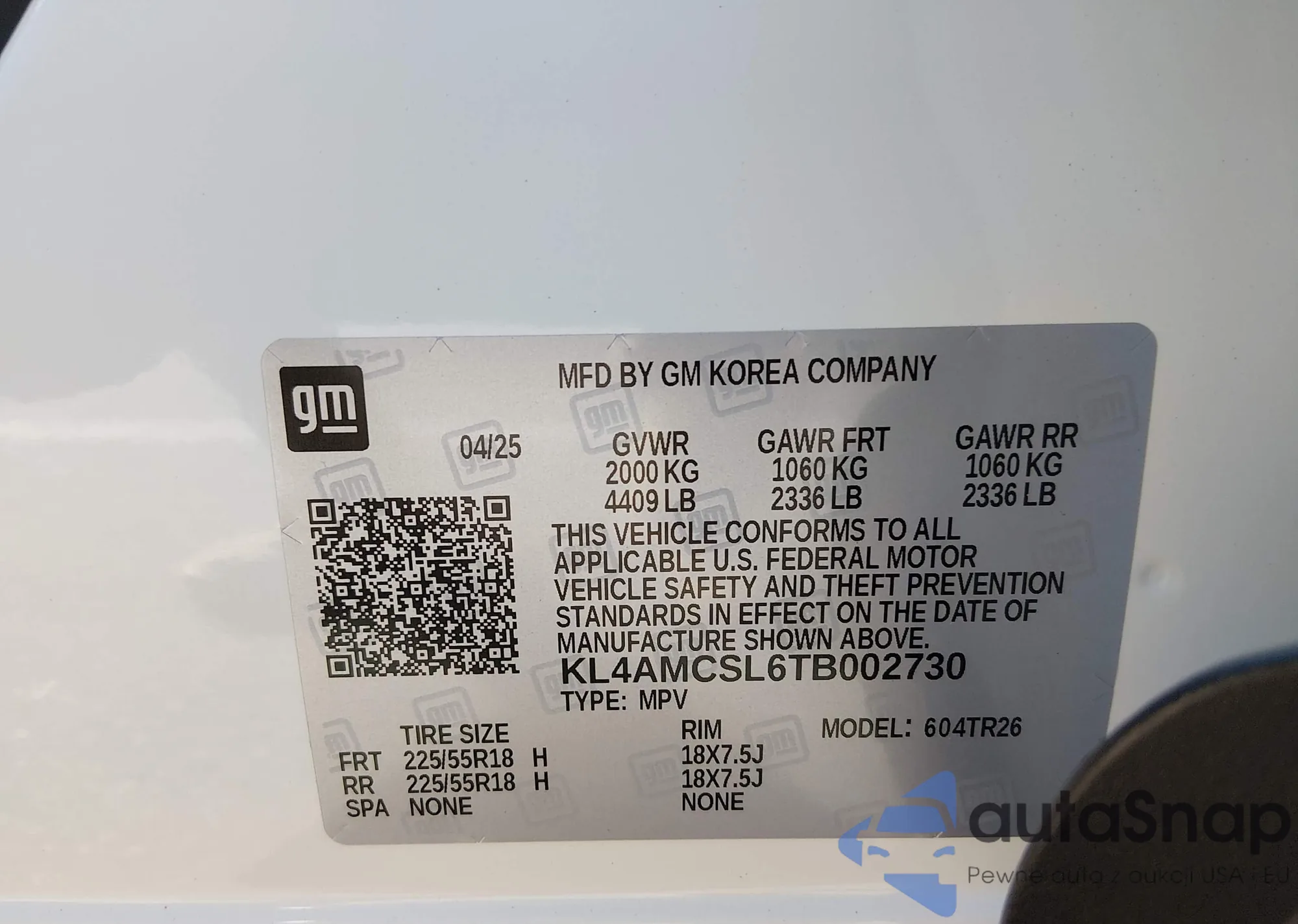 • VIN KL4AMCSL6TB002730