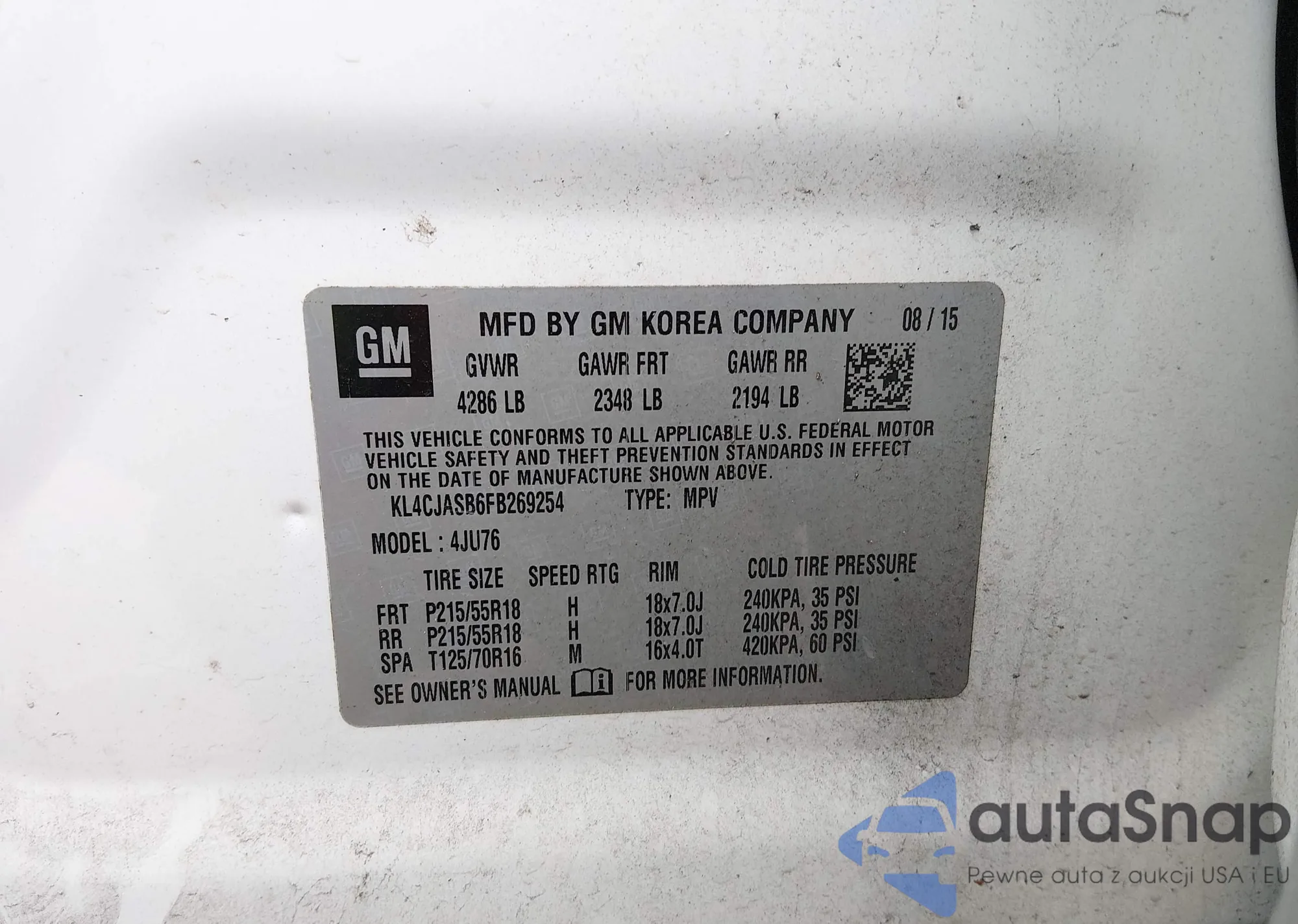 • VIN KL4CJASB6FB269254