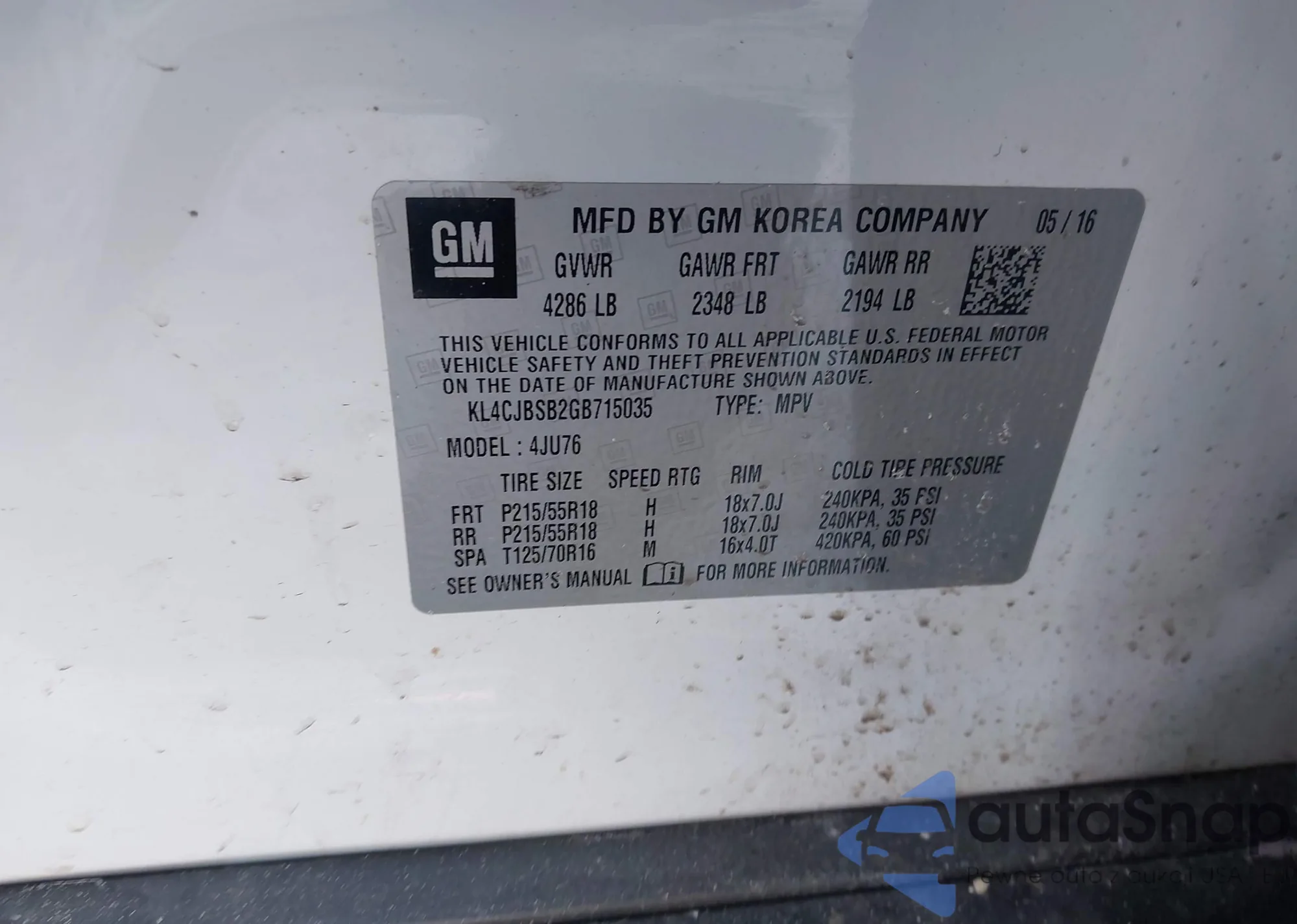 • VIN KL4CJBSB2GB715035
