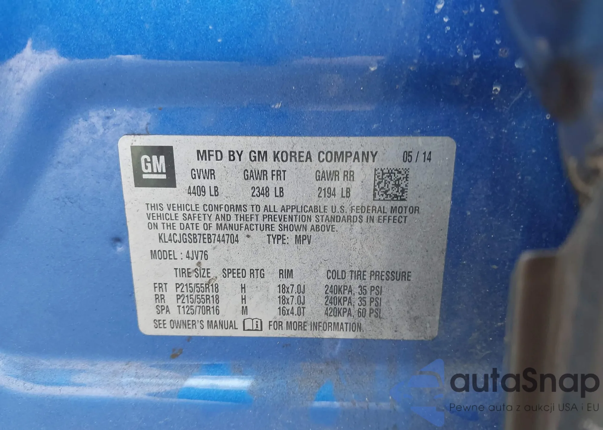 • VIN KL4CJGSB7EB744704