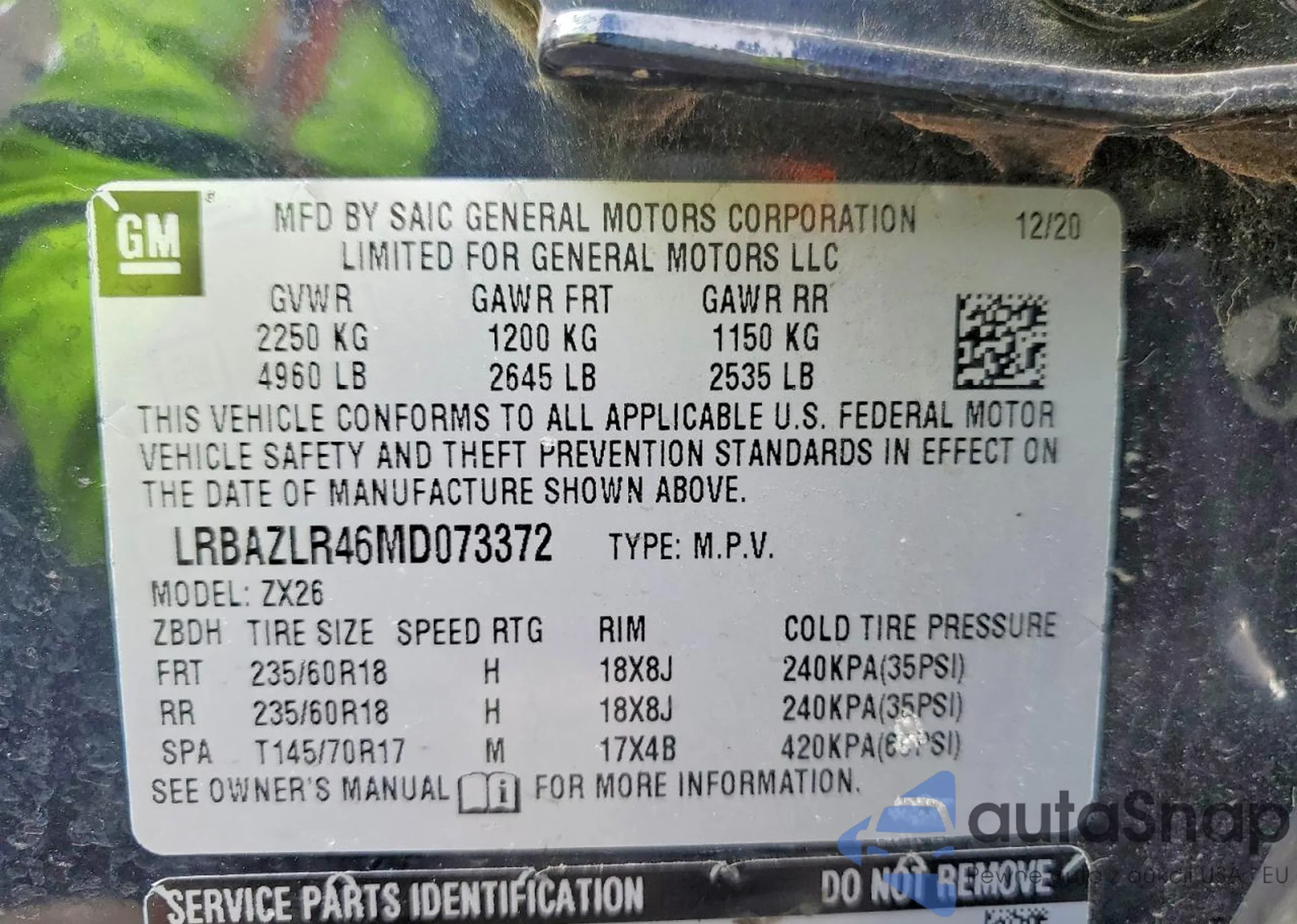 • VIN LRBAZLR46MD073372
