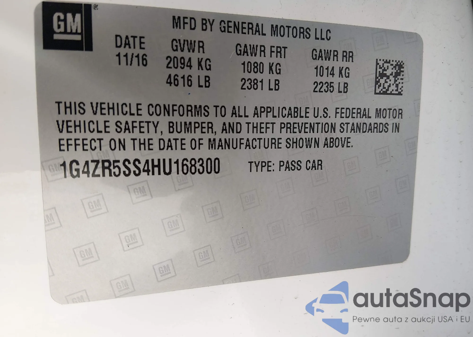 • VIN 1G4ZR5SS4HU175876