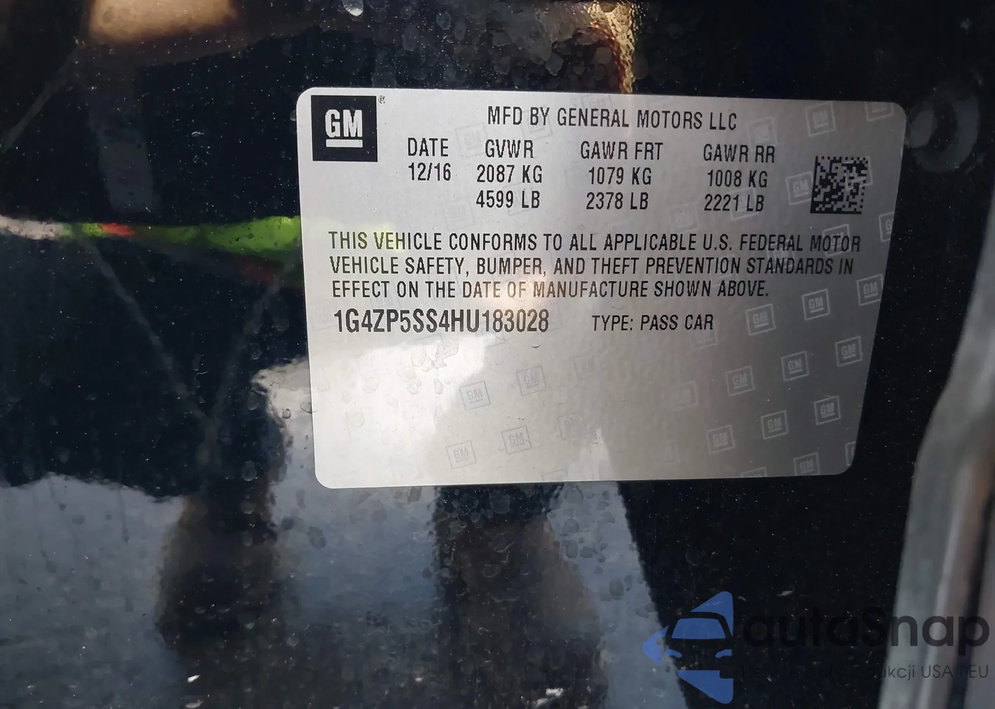 • VIN 1G4ZP5SS4HU183028