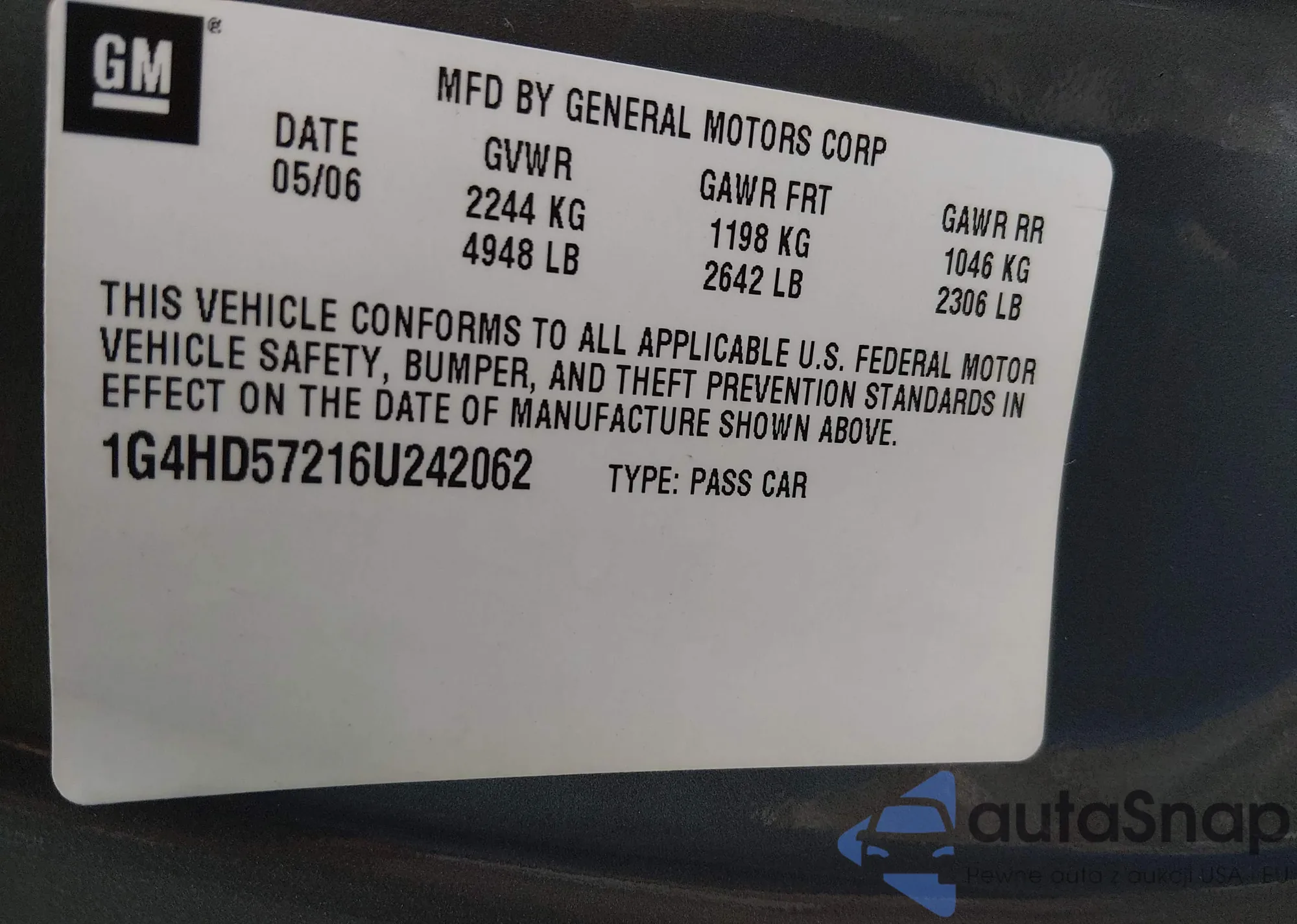 • VIN 1G4HD57216U242062