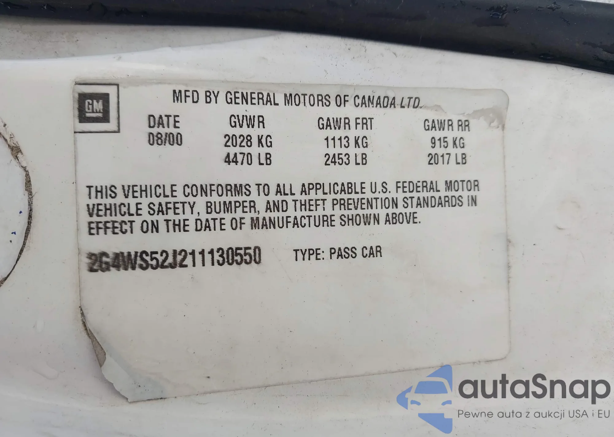 • VIN 2G4WS52J211130550