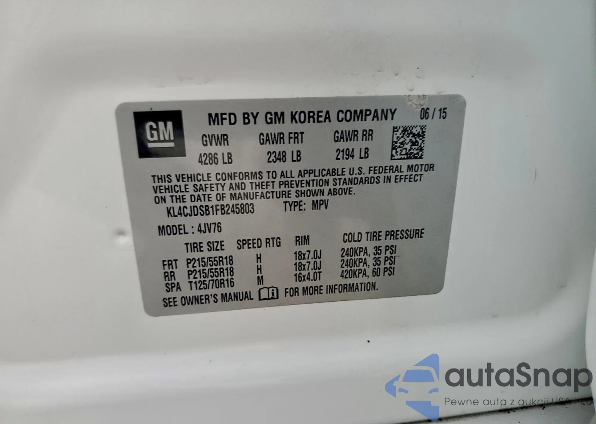 • VIN KL4CJDSB1FB245803