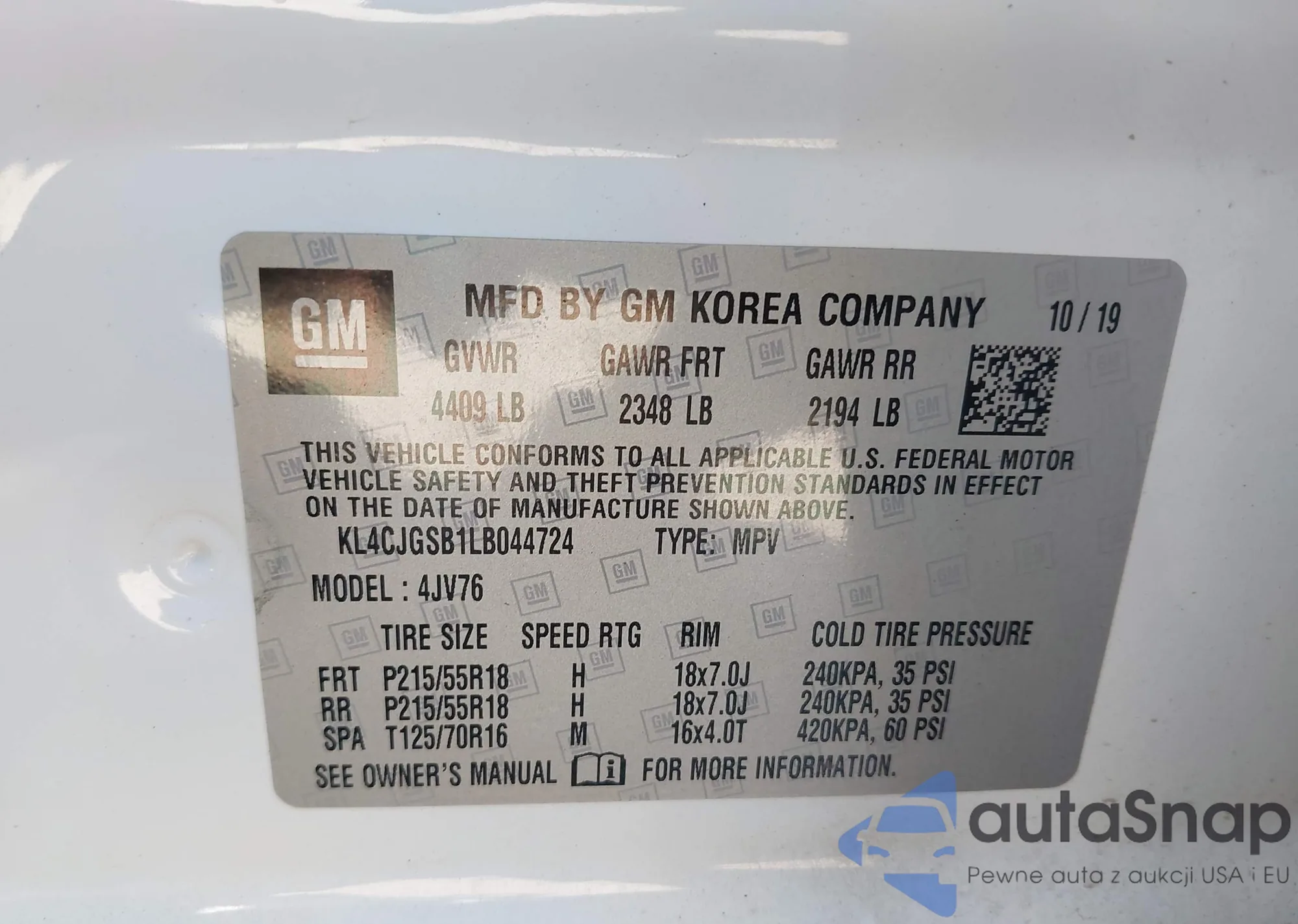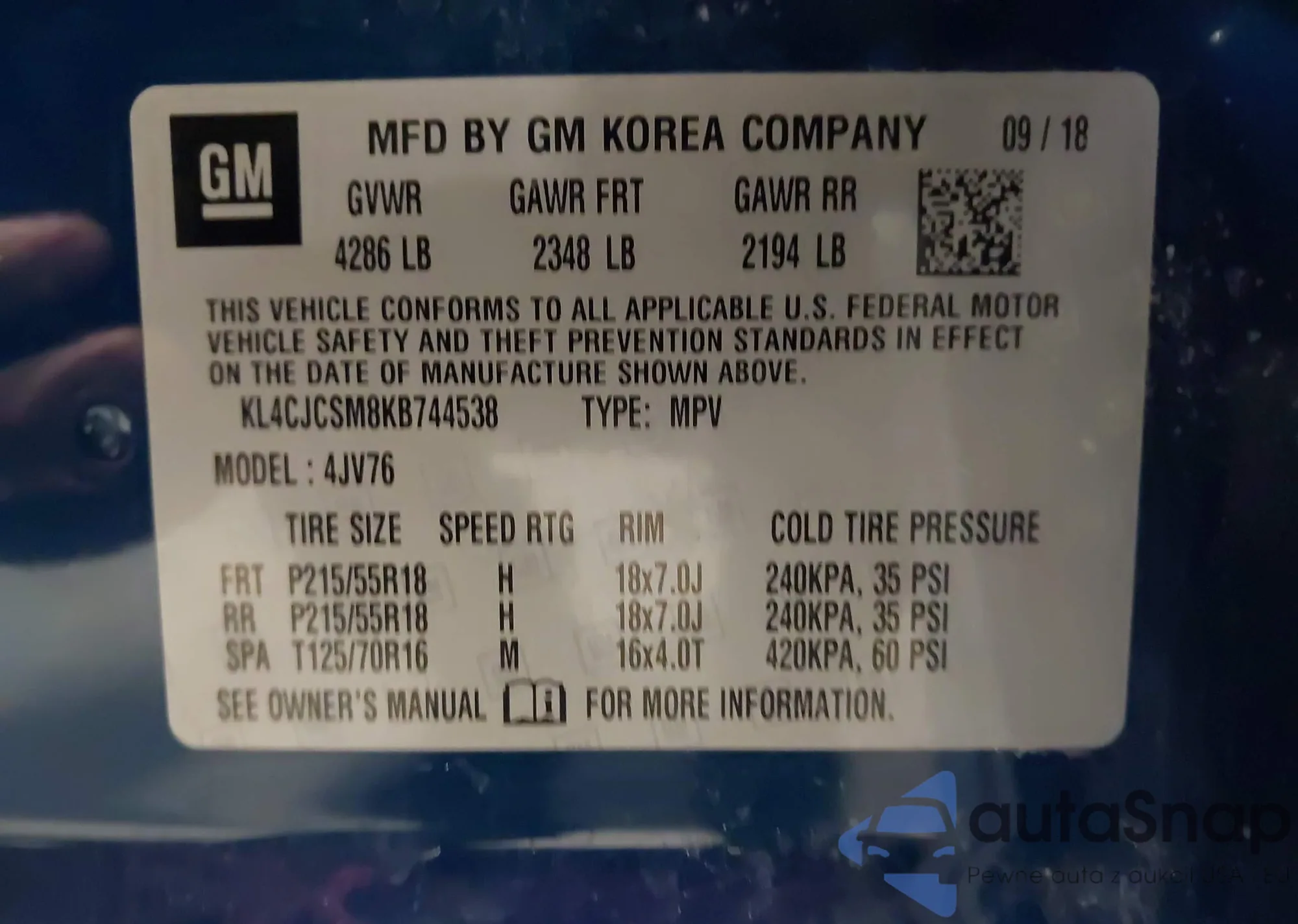 • VIN KL4CJCSM8KB744538