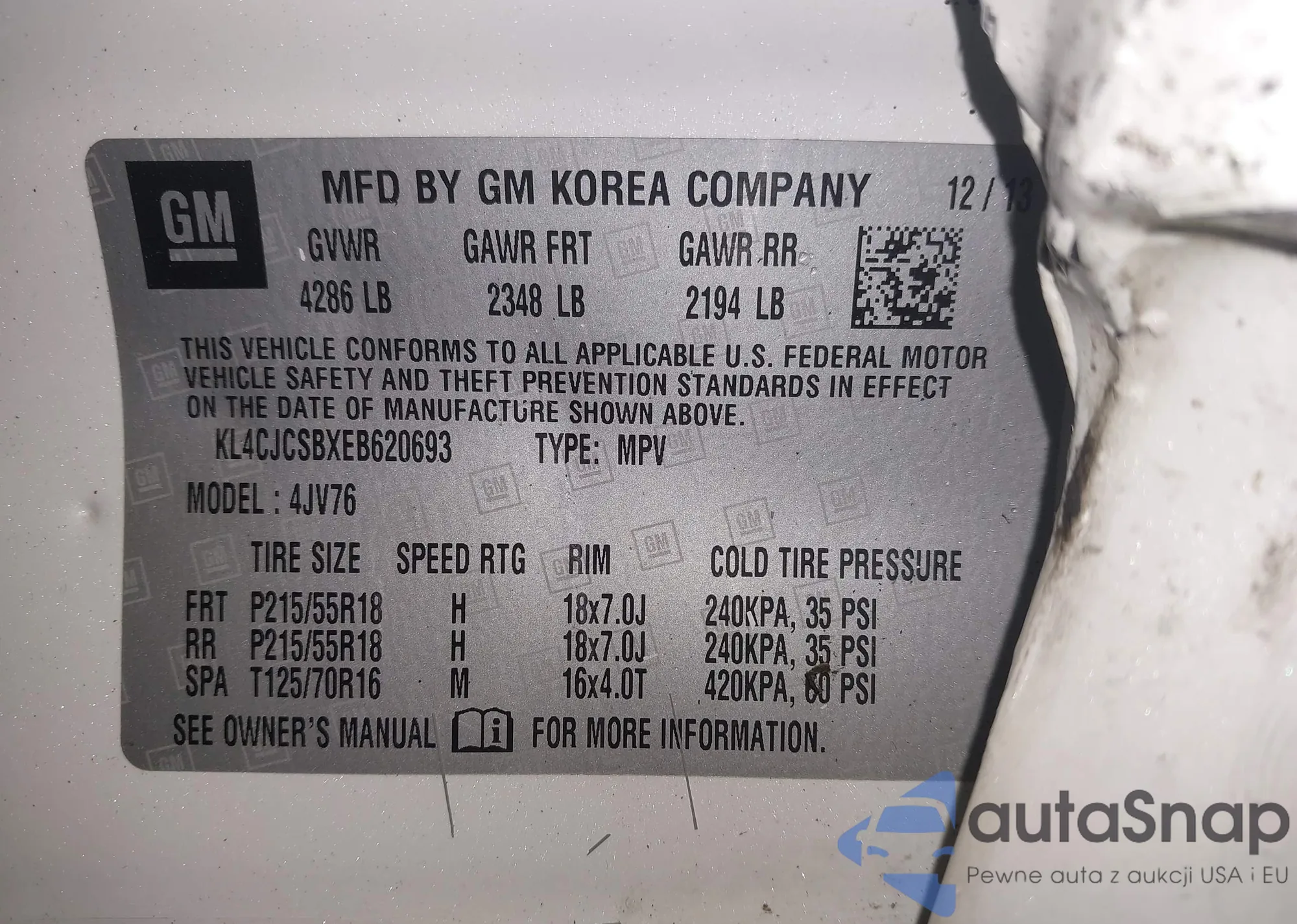 • VIN KL4CJCSBXEB620693