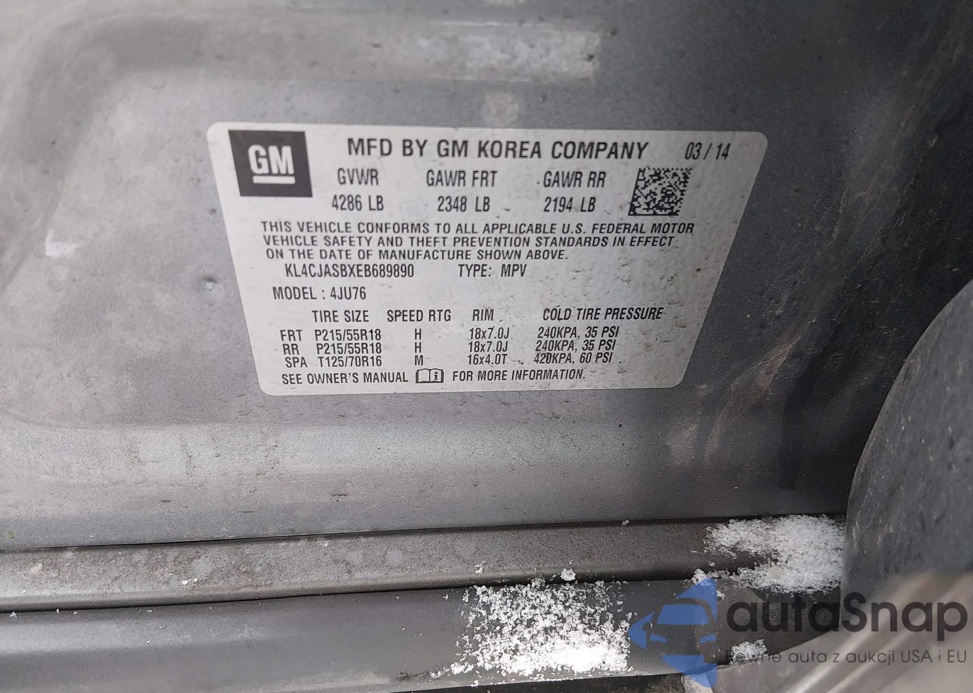 • VIN KL4CJASBXEB689890