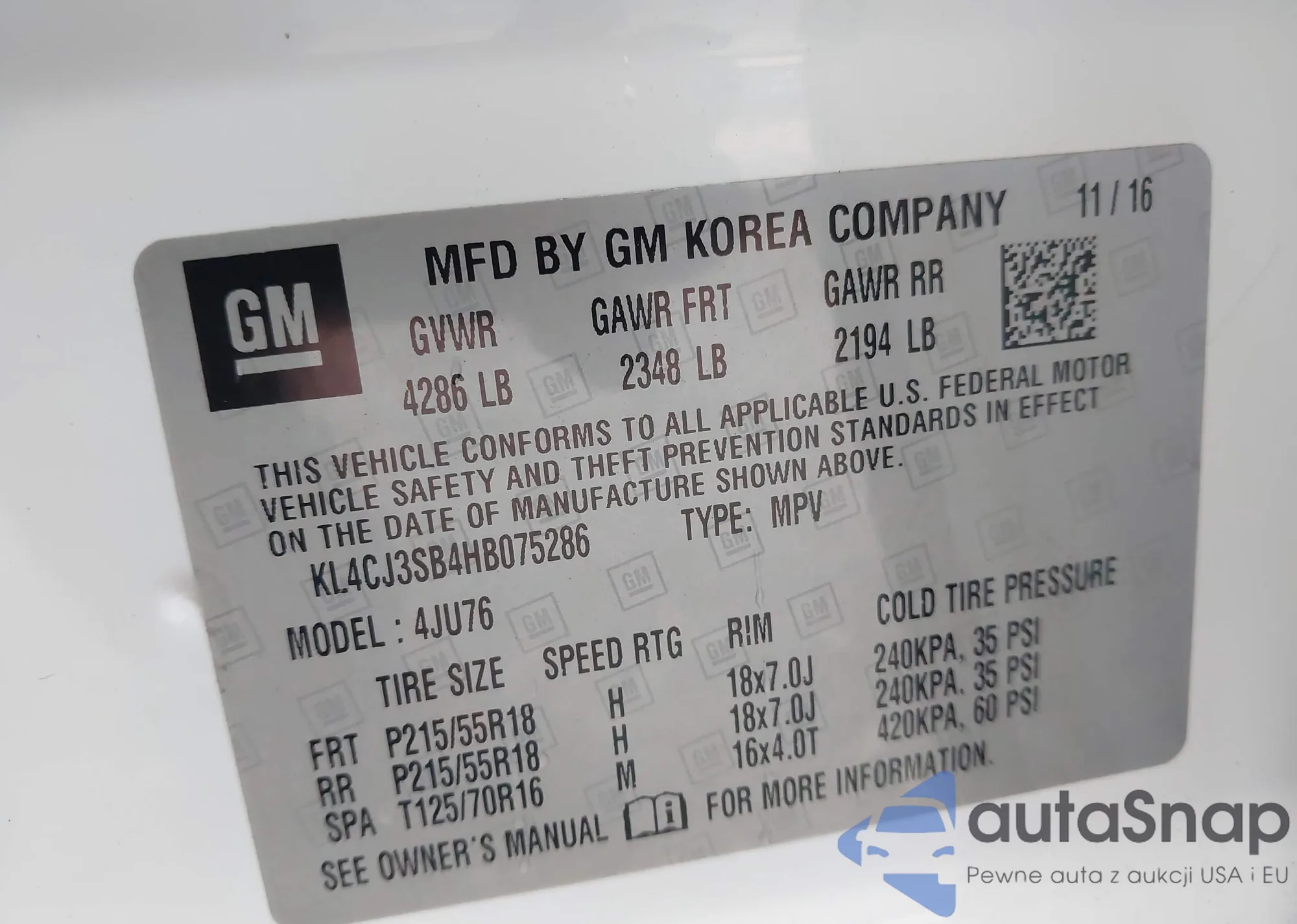 • VIN KL4CJ3SB4HB075286