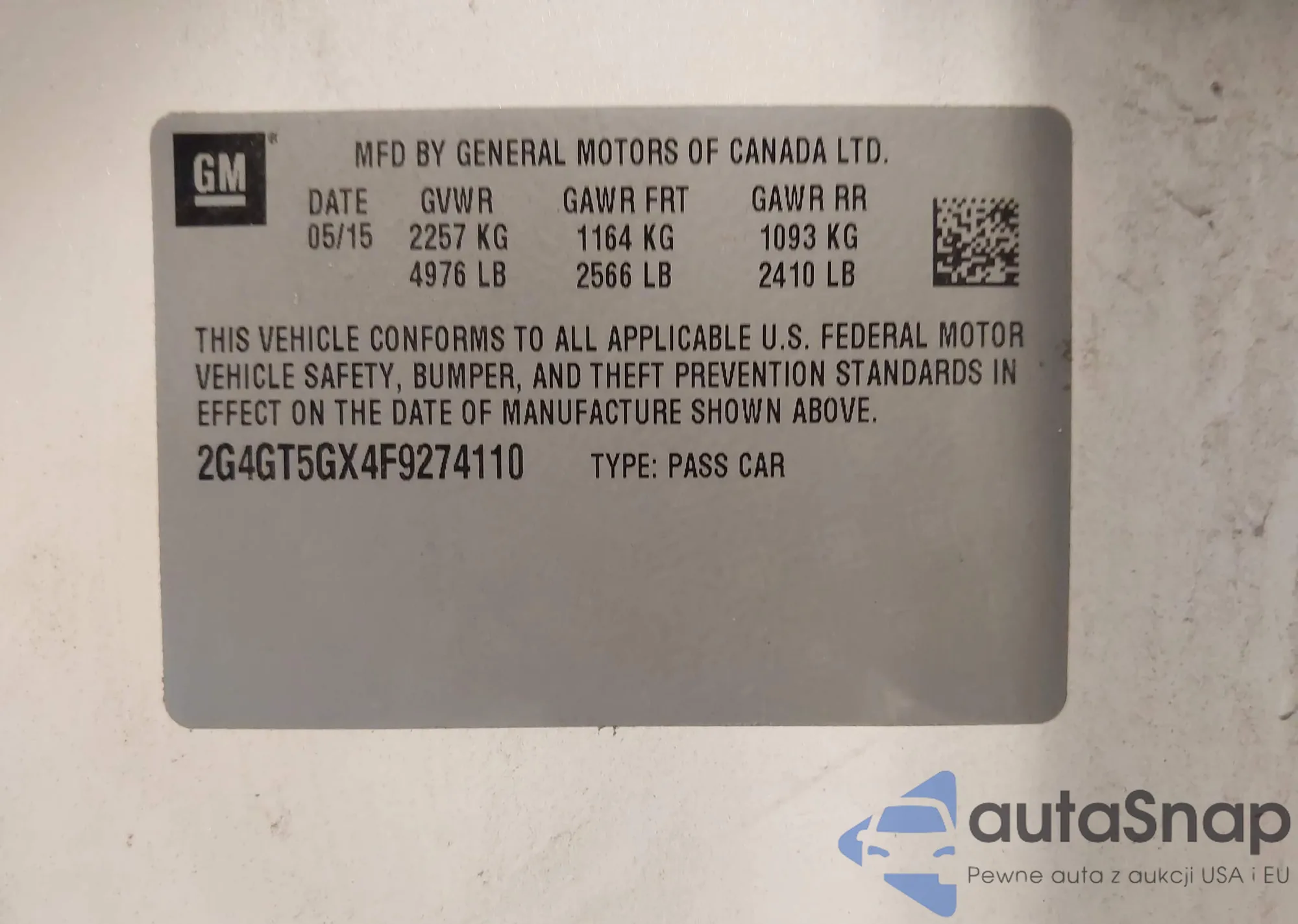 • VIN 2G4GT5GX4F9274110