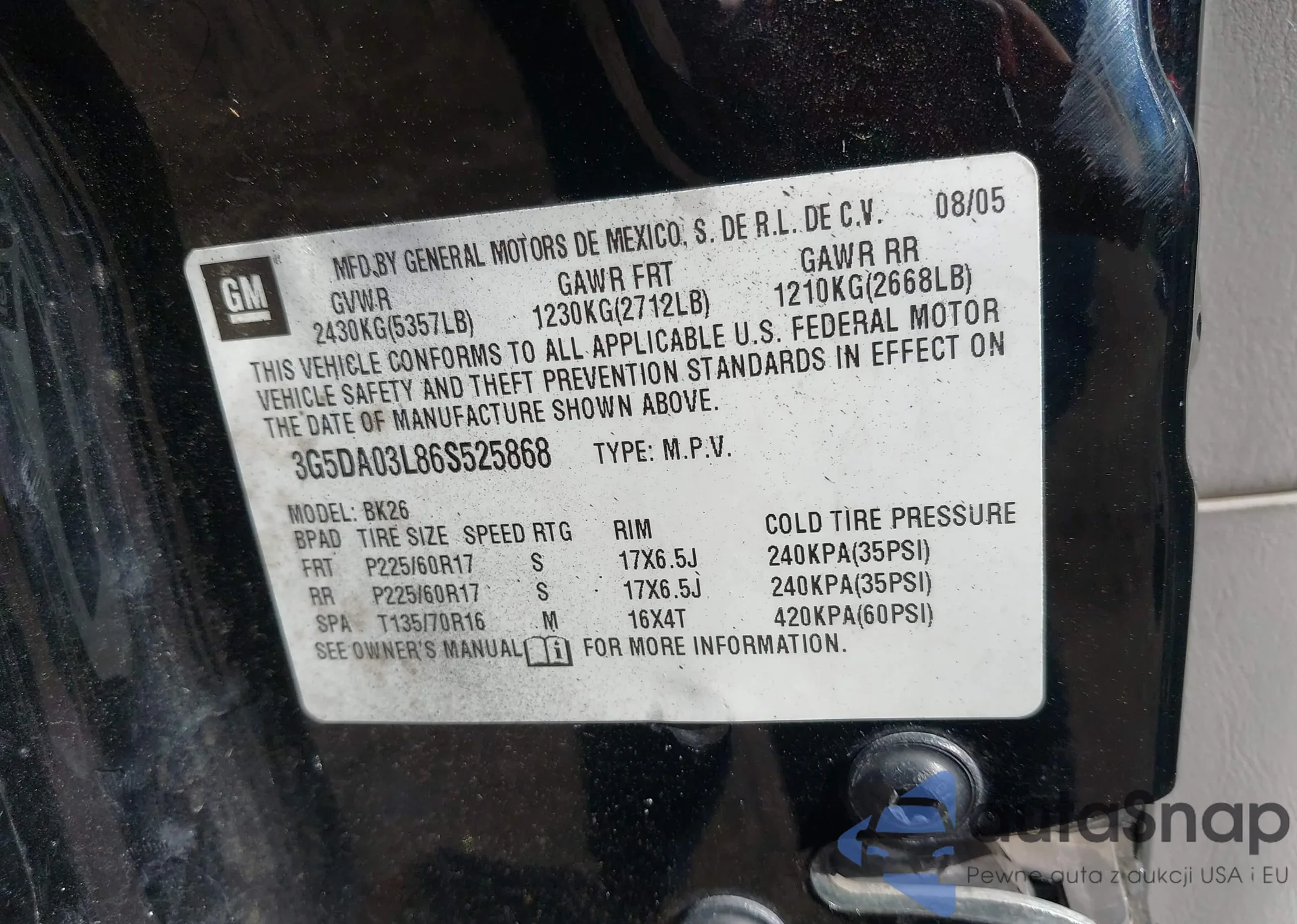 LOT: 44404057 VIN: 3G5DA03L86S525868