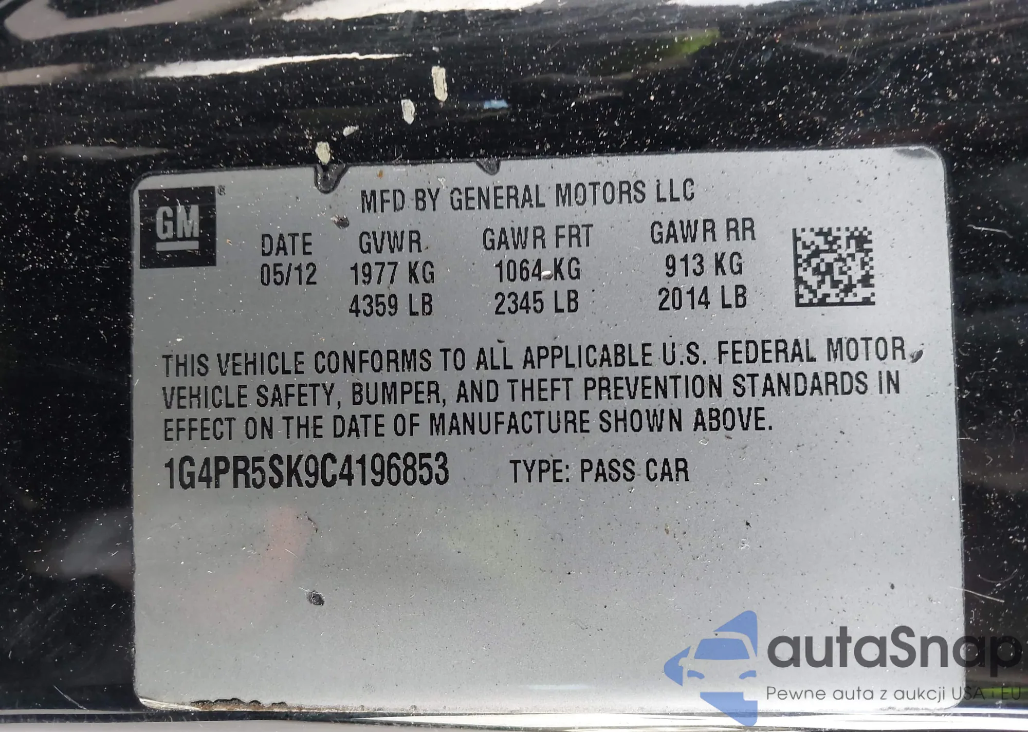 LOT: 44464157 VIN: 1G4PR5SK9C4196853