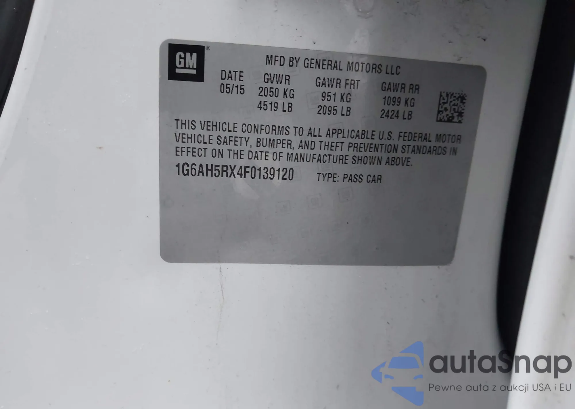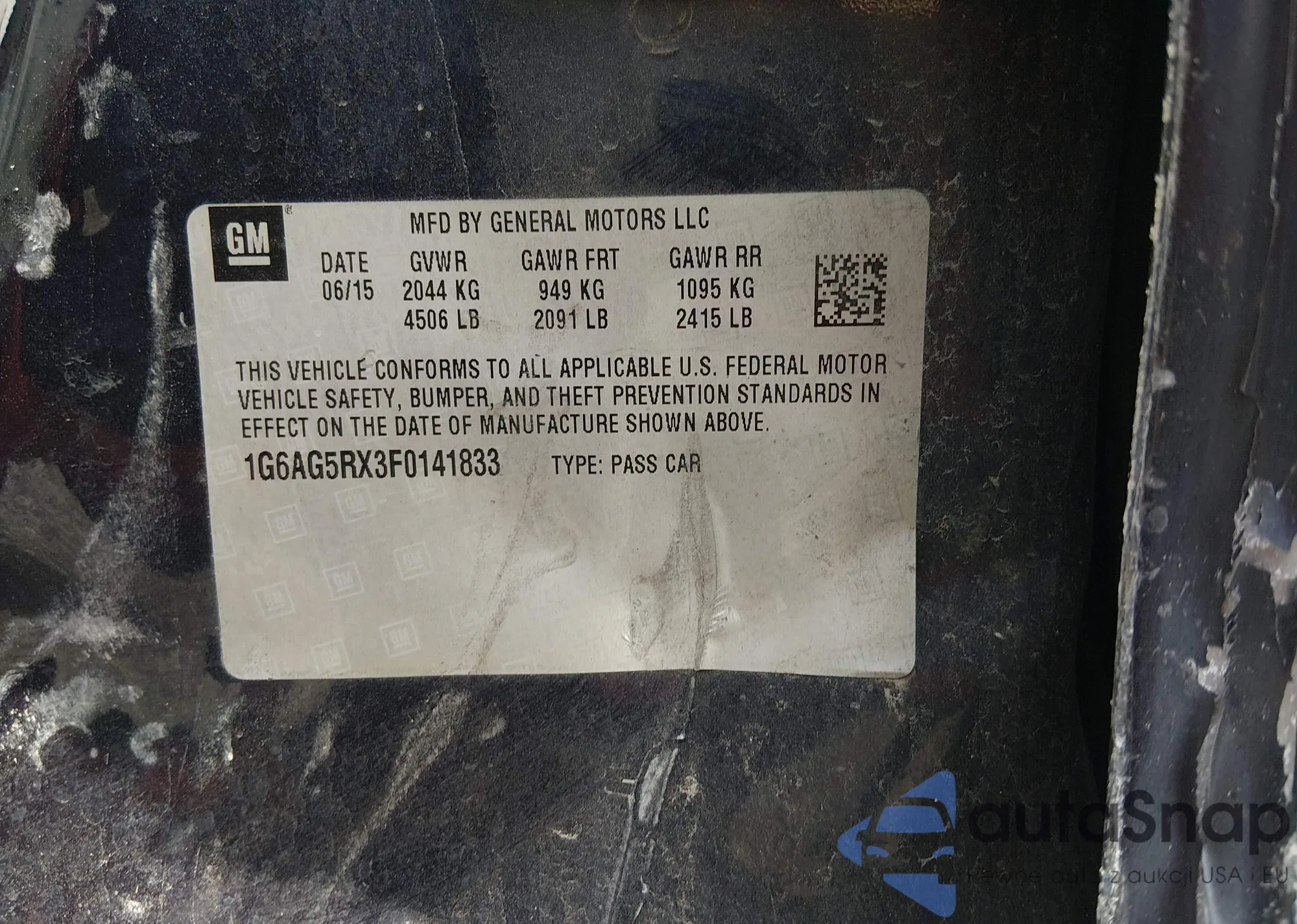 LOT: 44398170 VIN: 1G6AG5RX3F0141833