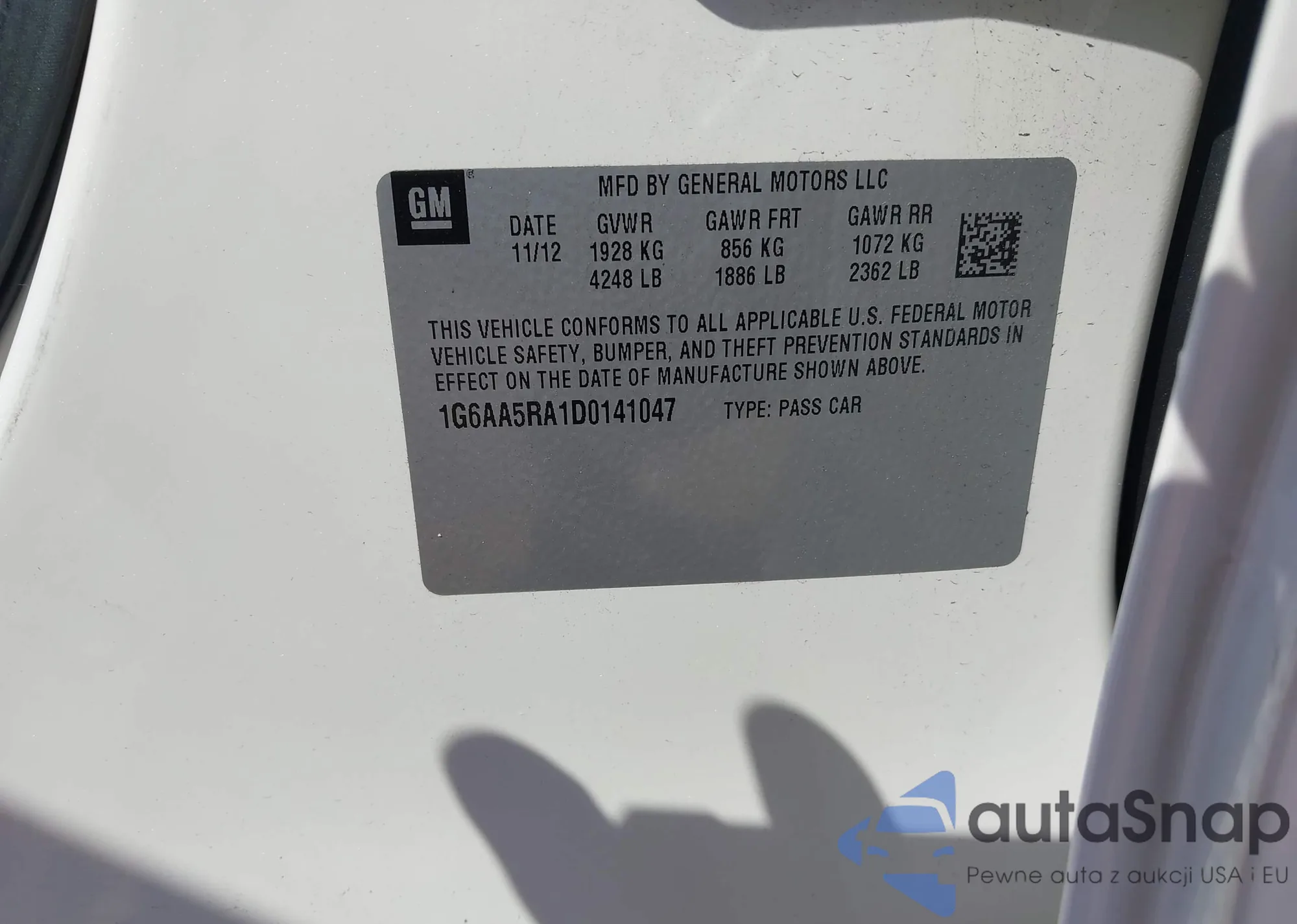 • VIN 1G6AA5RA1D0141047