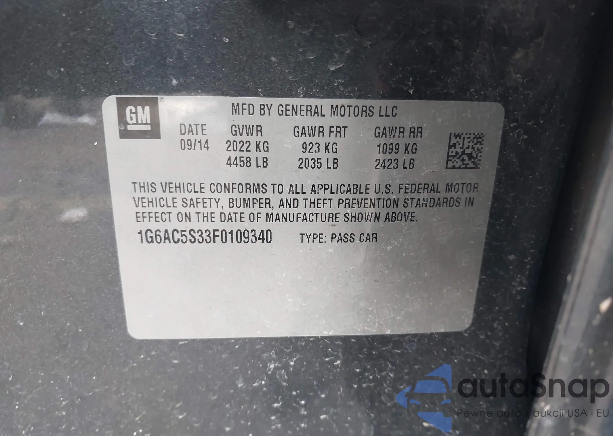 • VIN 1G6AB5SX7F0130441