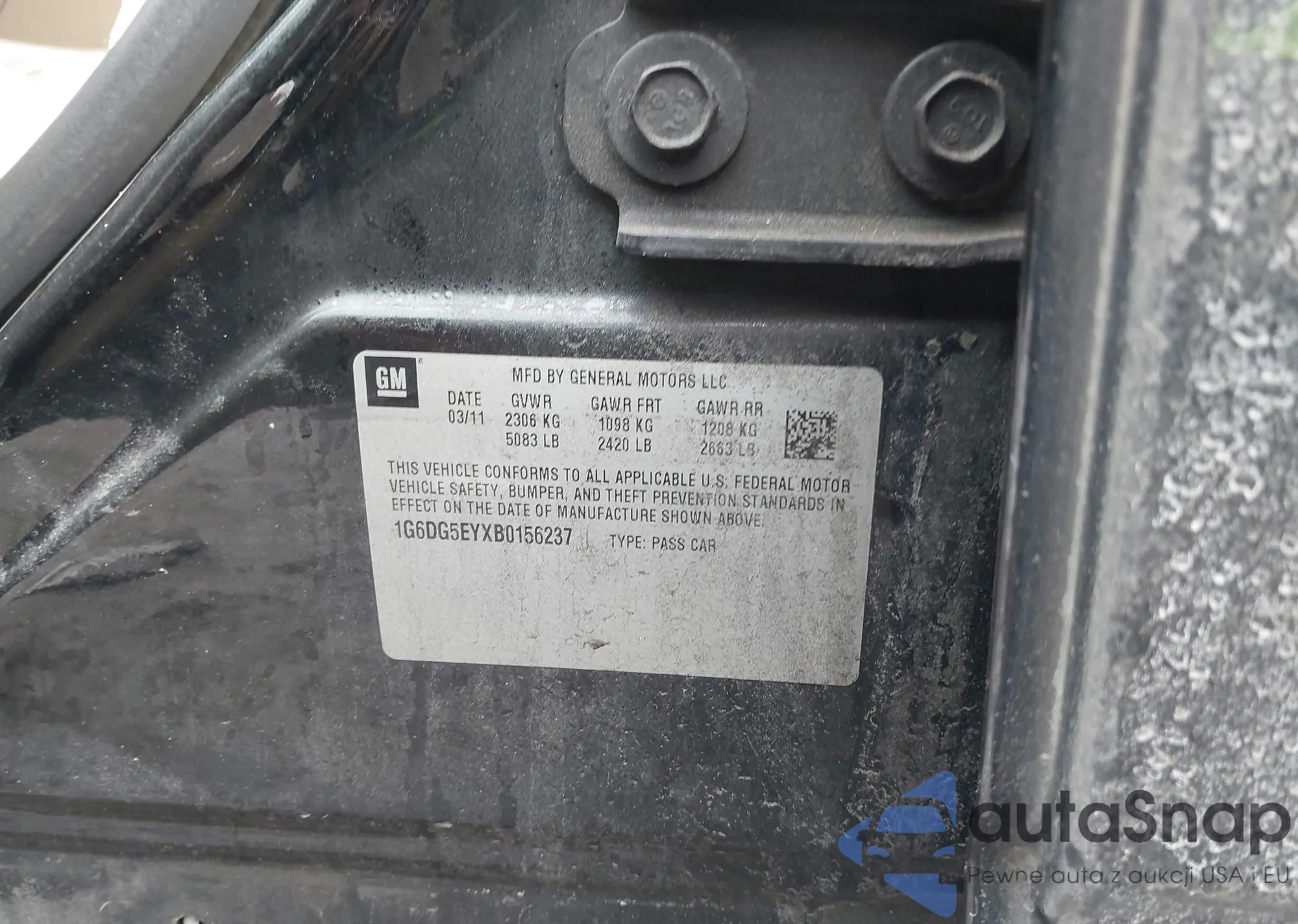 • VIN 1G6DG5EYXB0156237