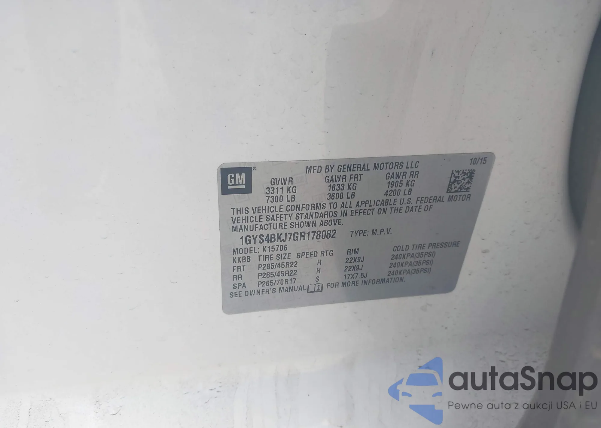 • VIN 1GYS4PKJ7FR575531