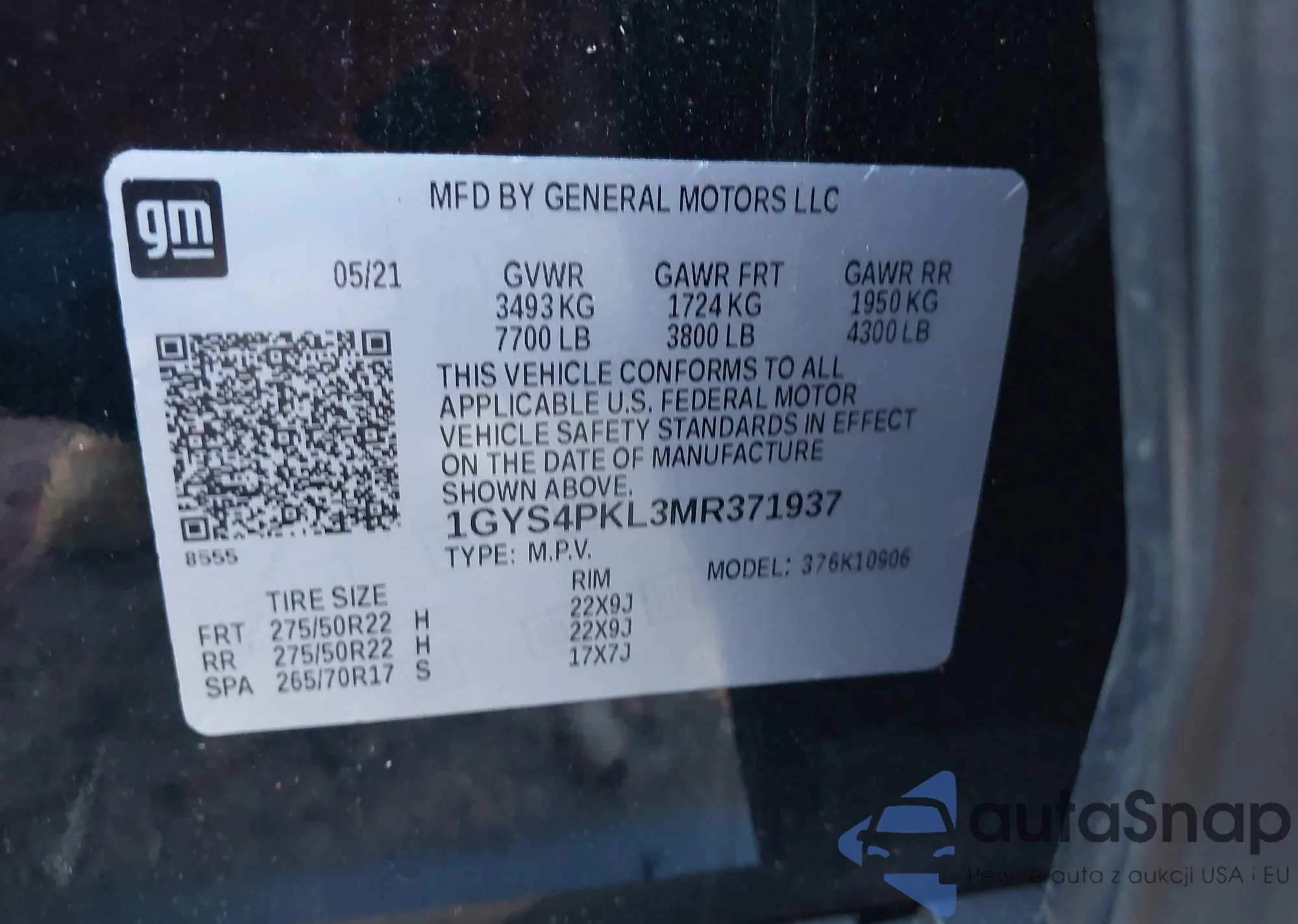 • VIN 1GYS4PKL3MR371937