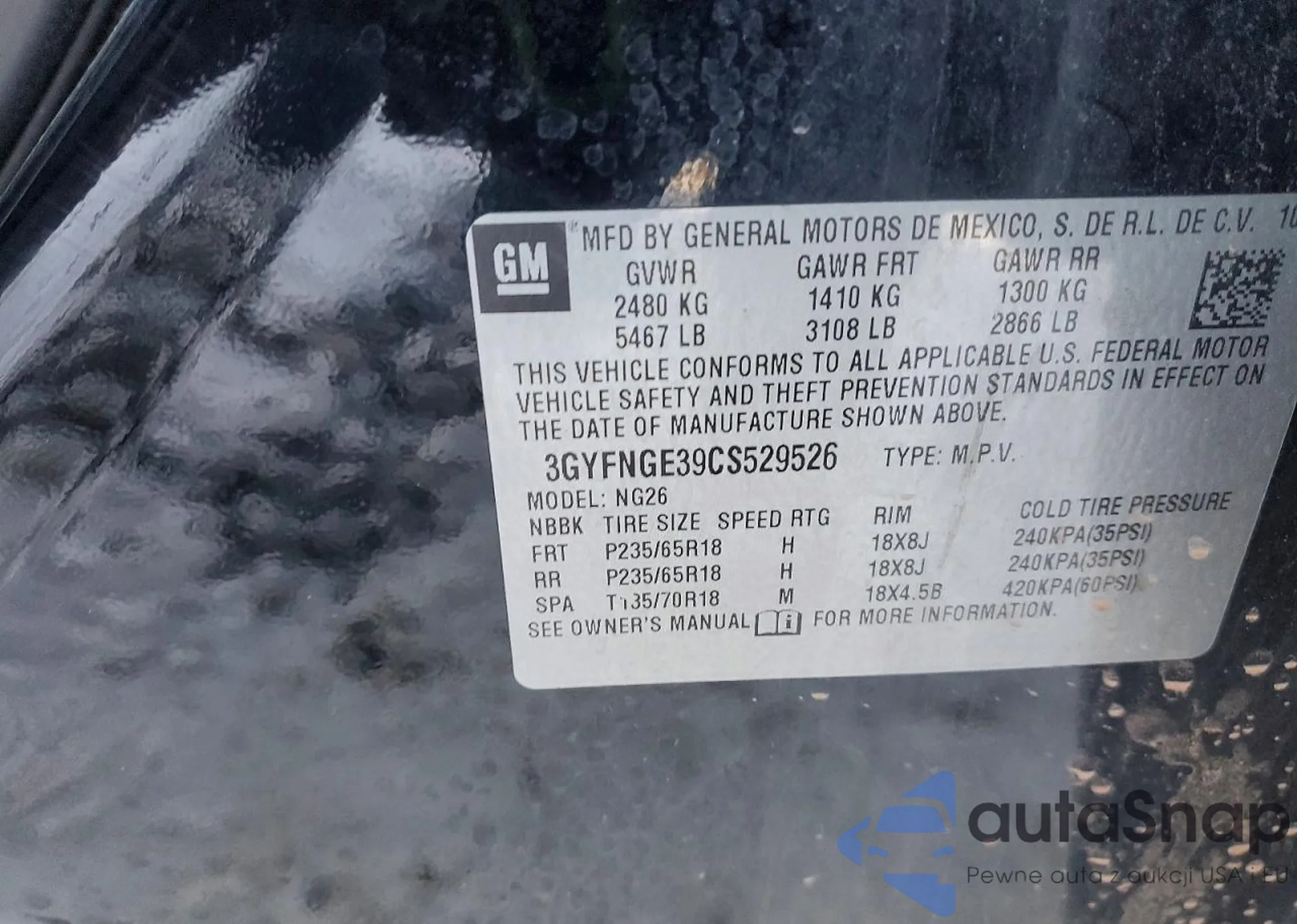 • VIN 3GYFNAE35CS637896