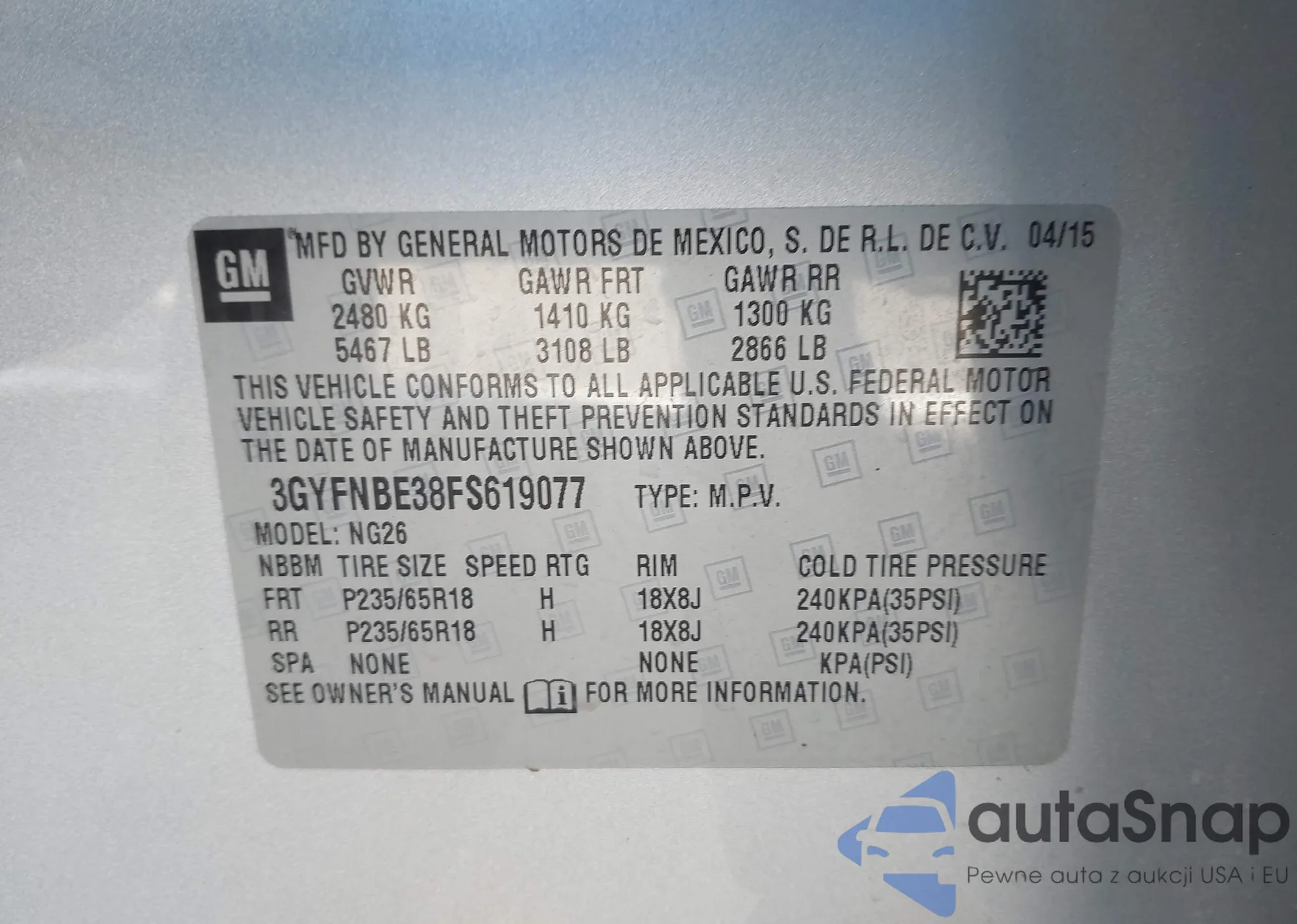 LOT: 43856246 VIN: 3GYFNBE38FS619077