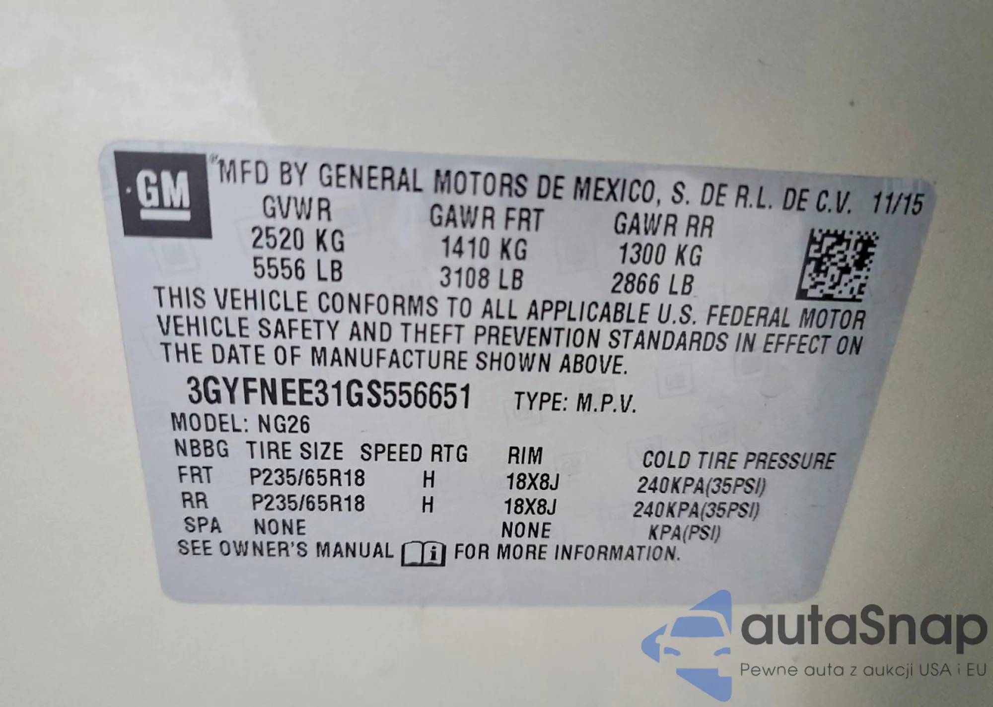 • VIN 3GYFNEE31GS556651