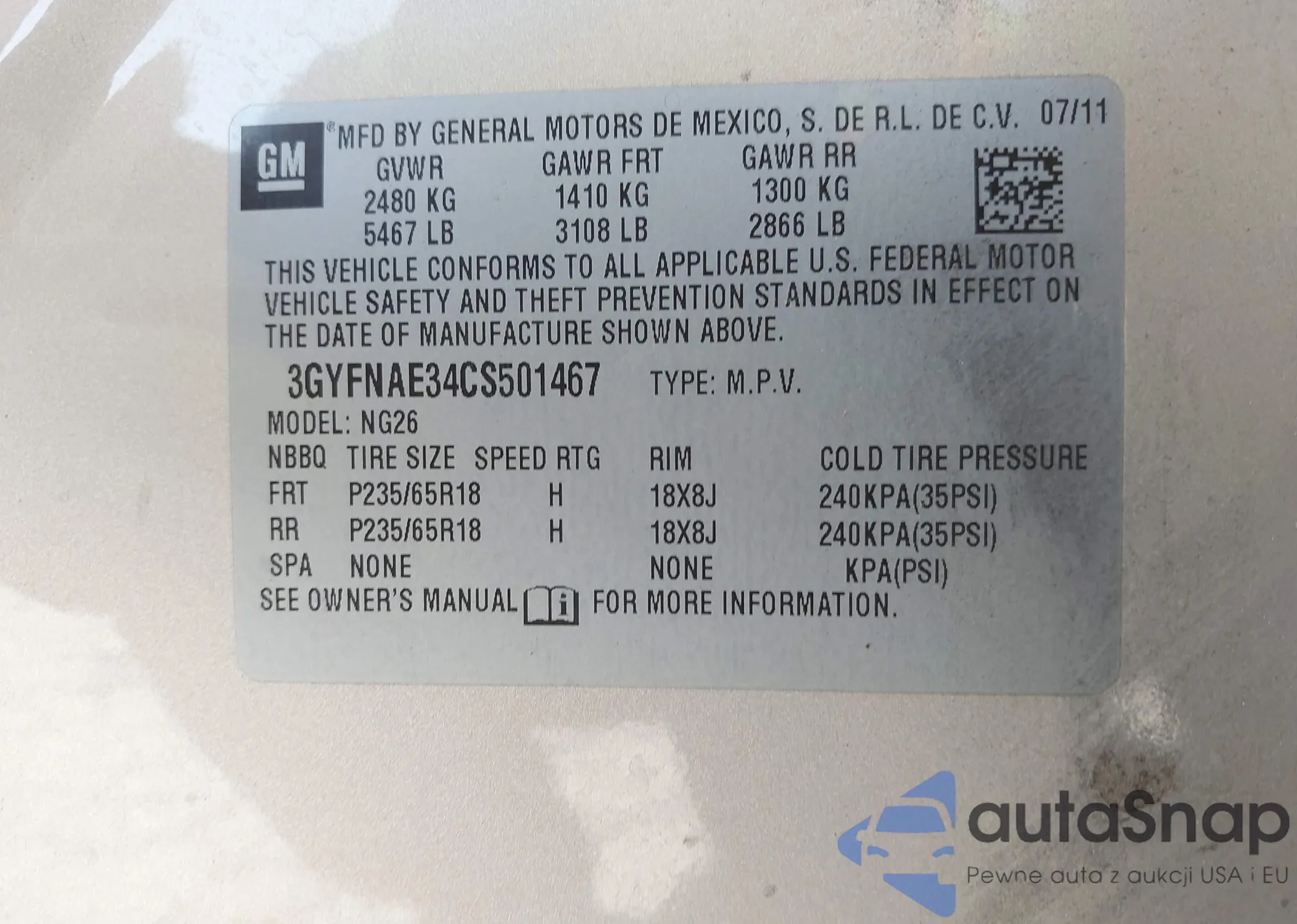 • VIN 3GYFNAE34CS501467