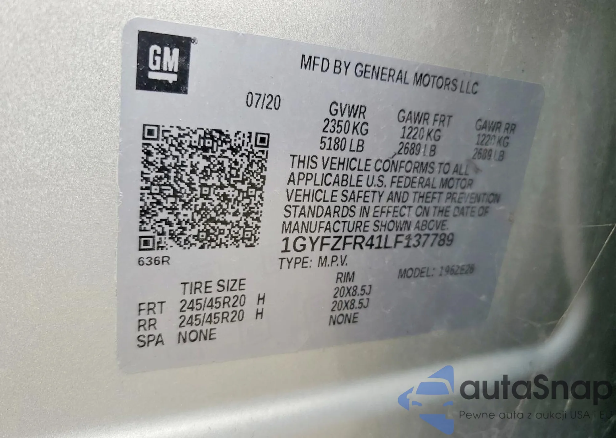 • VIN 1GYFZCR49LF151440