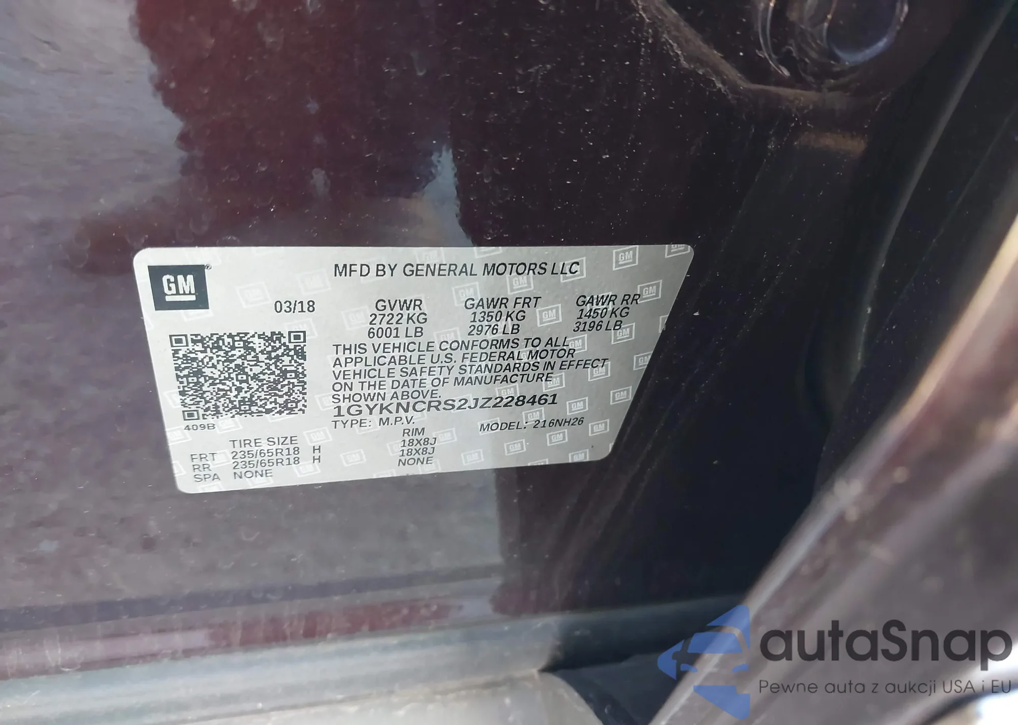 LOT: 43907082 VIN: 1GYKNCRS0JZ103488