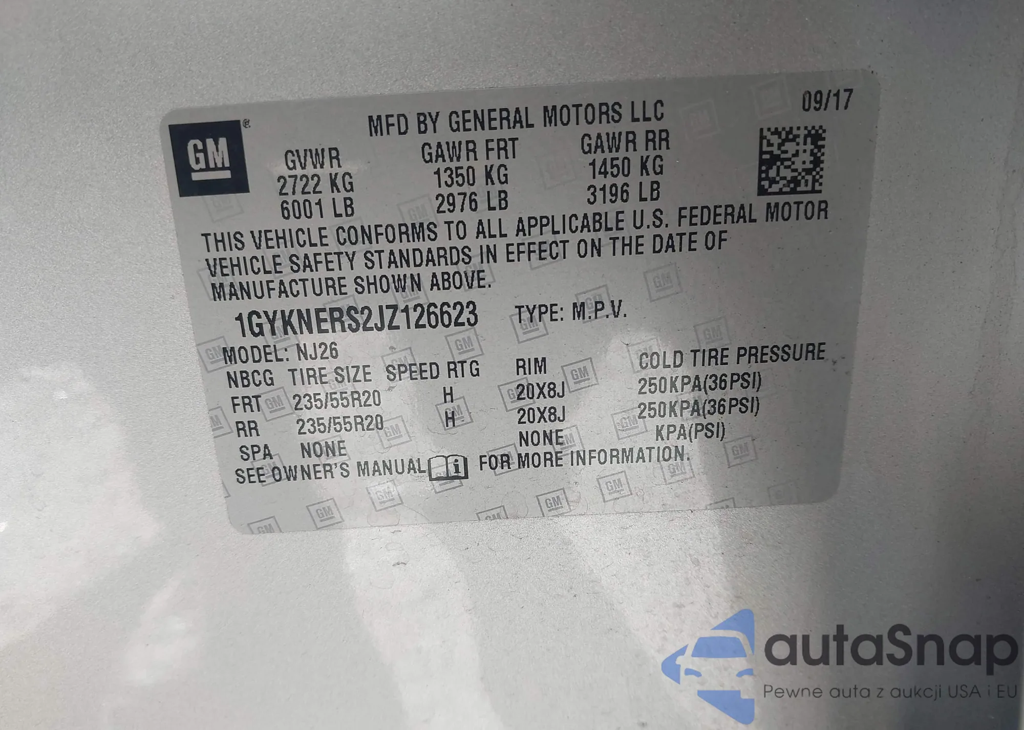 LOT: 43499826 VIN: 1GYKNCR40LZ207337