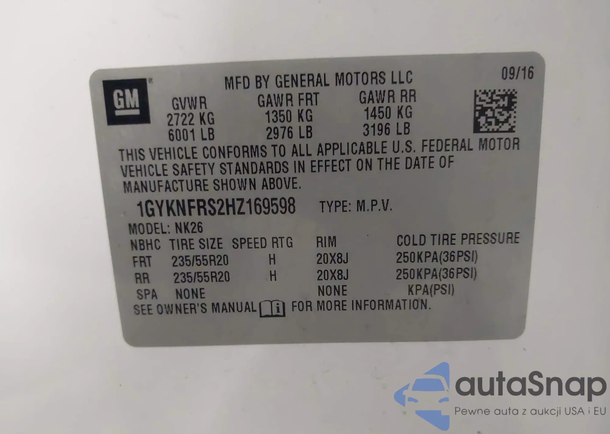 LOT: 44116985 VIN: 1GYKNFRS2HZ169598
