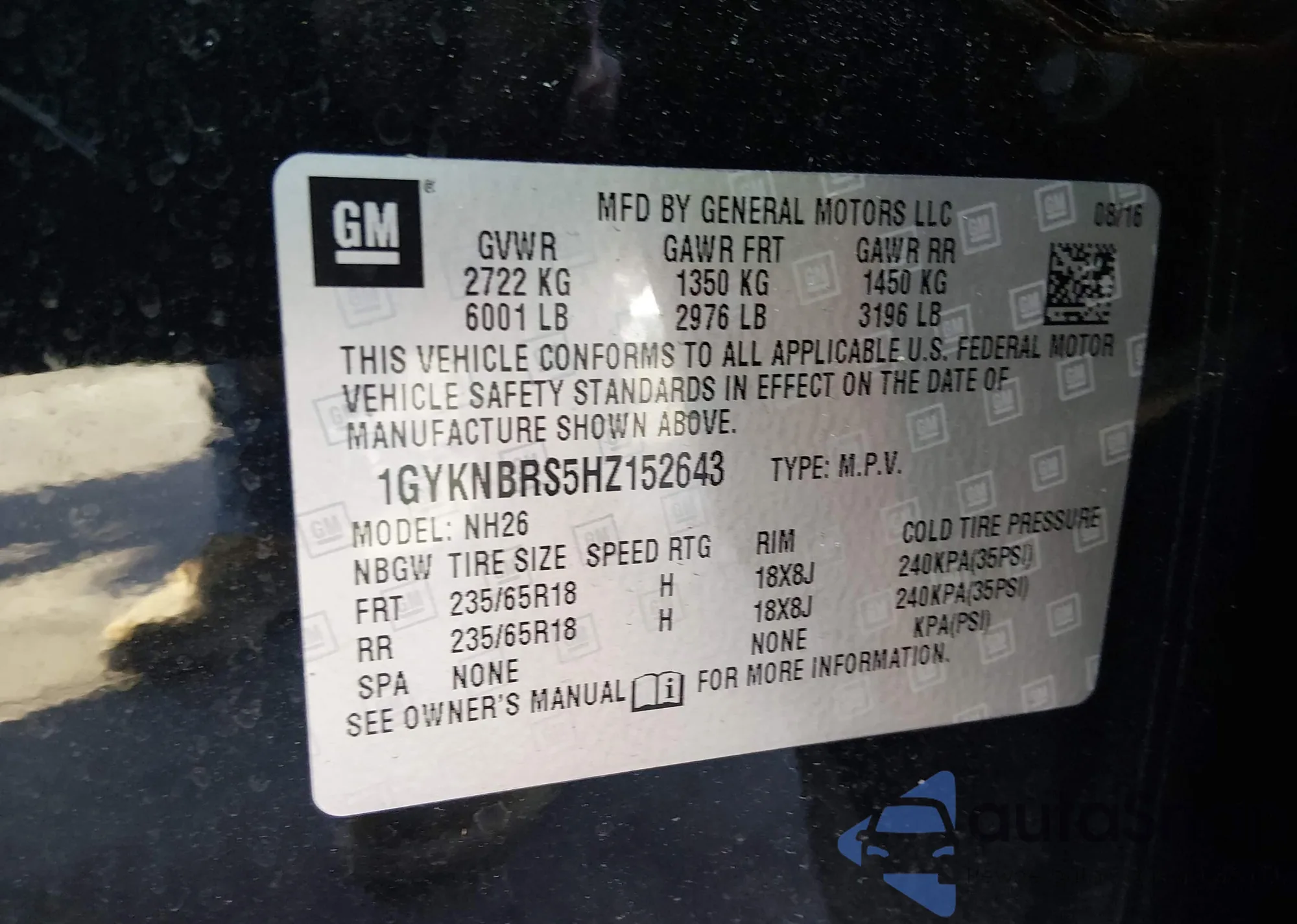 LOT: 44440693 VIN: 1GYKNBRS5HZ152643