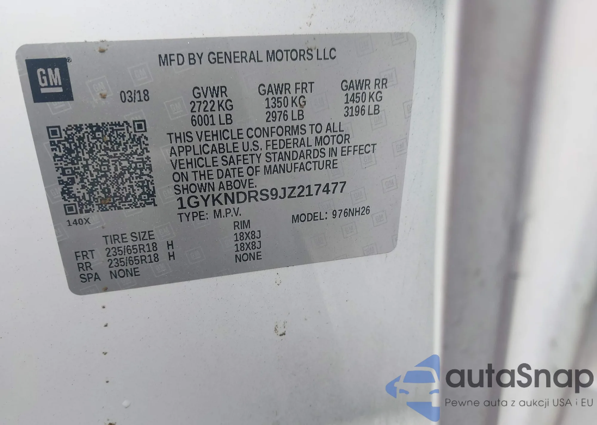 LOT: 44463468 VIN: 1GYKNCRS9JZ134139