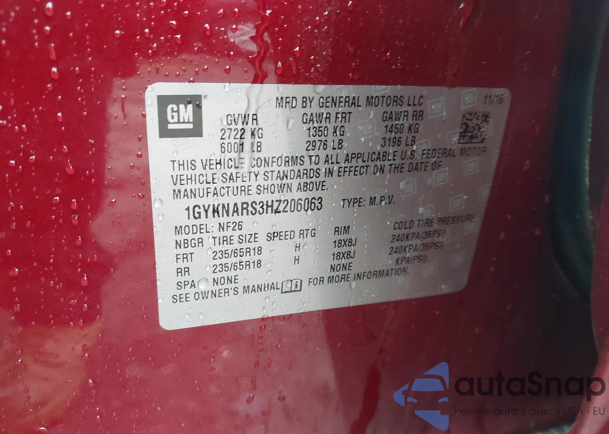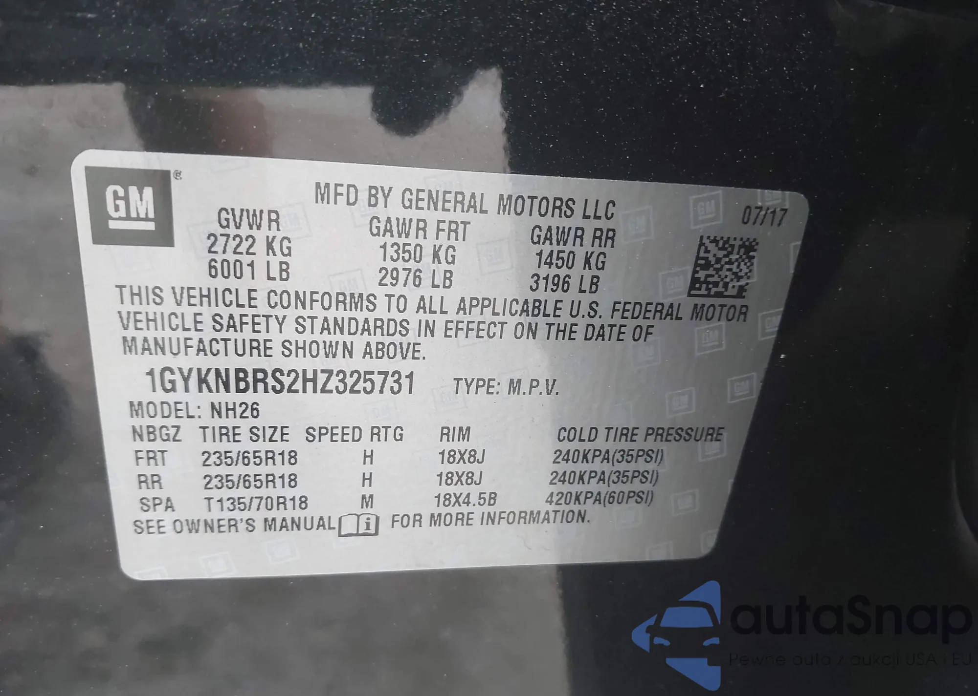 • VIN 1GYKNBRS2HZ325731