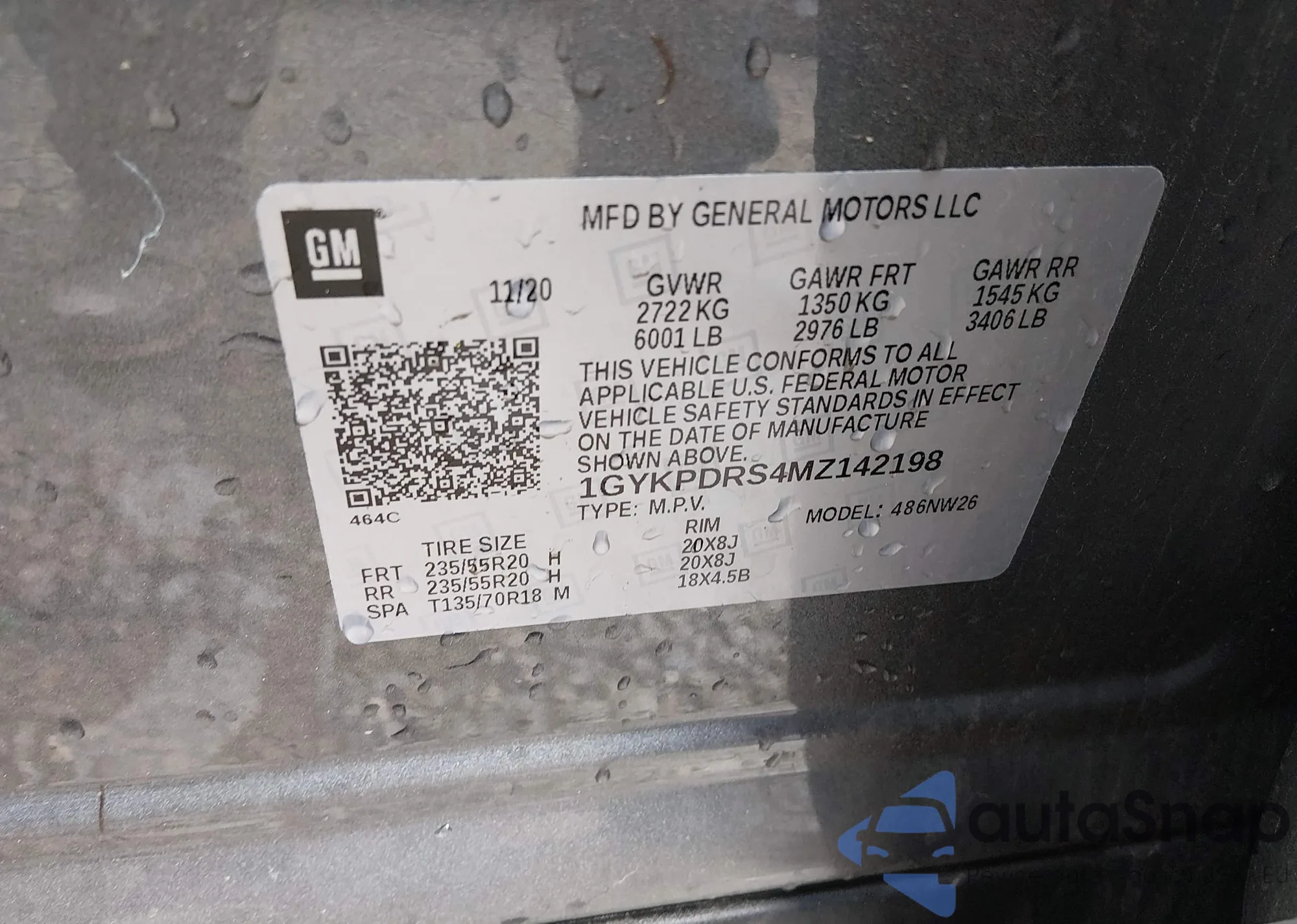 LOT: 44407530 VIN: 1GYKPDRS4MZ142198