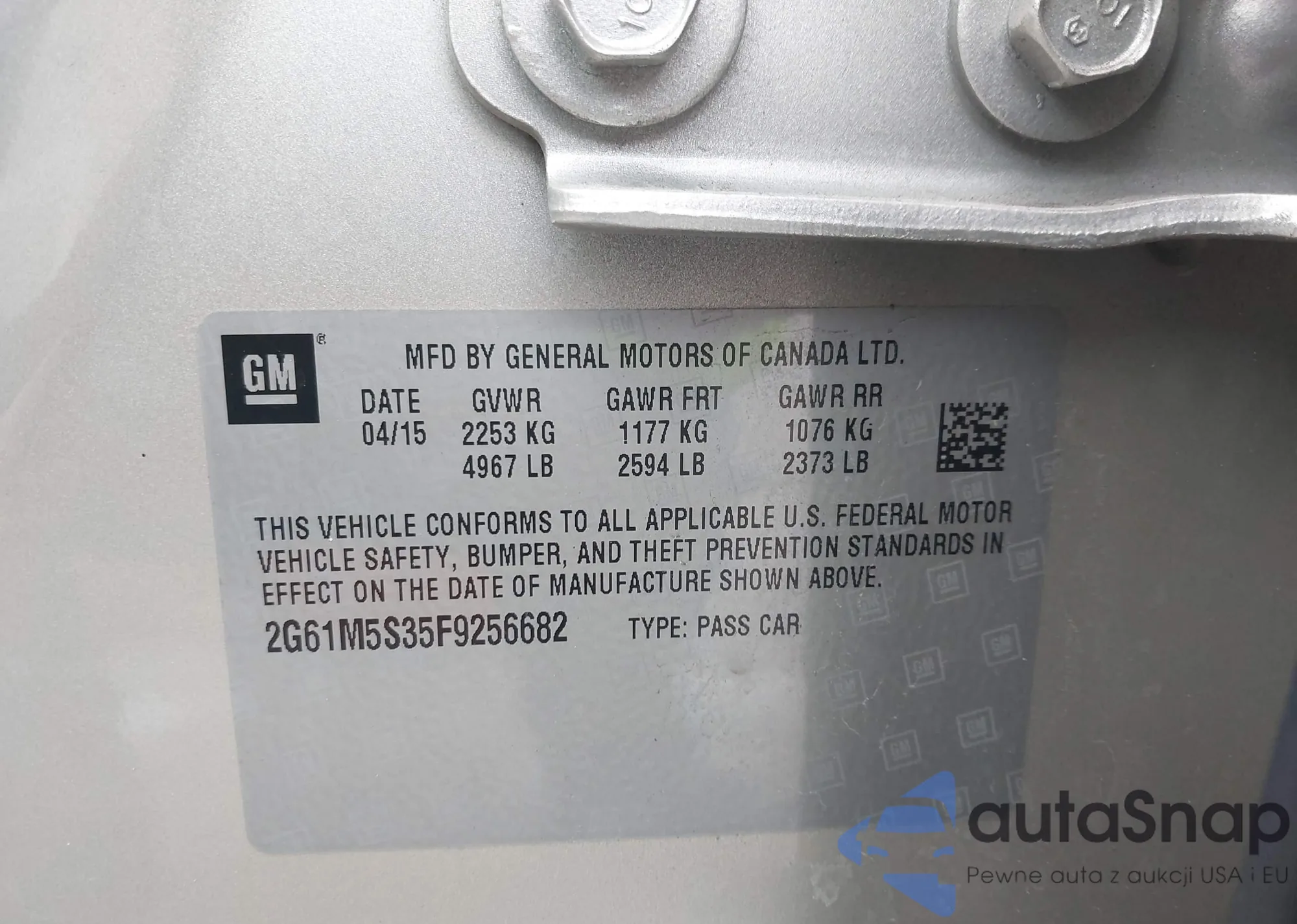 • VIN 2G61M5S35F9256682