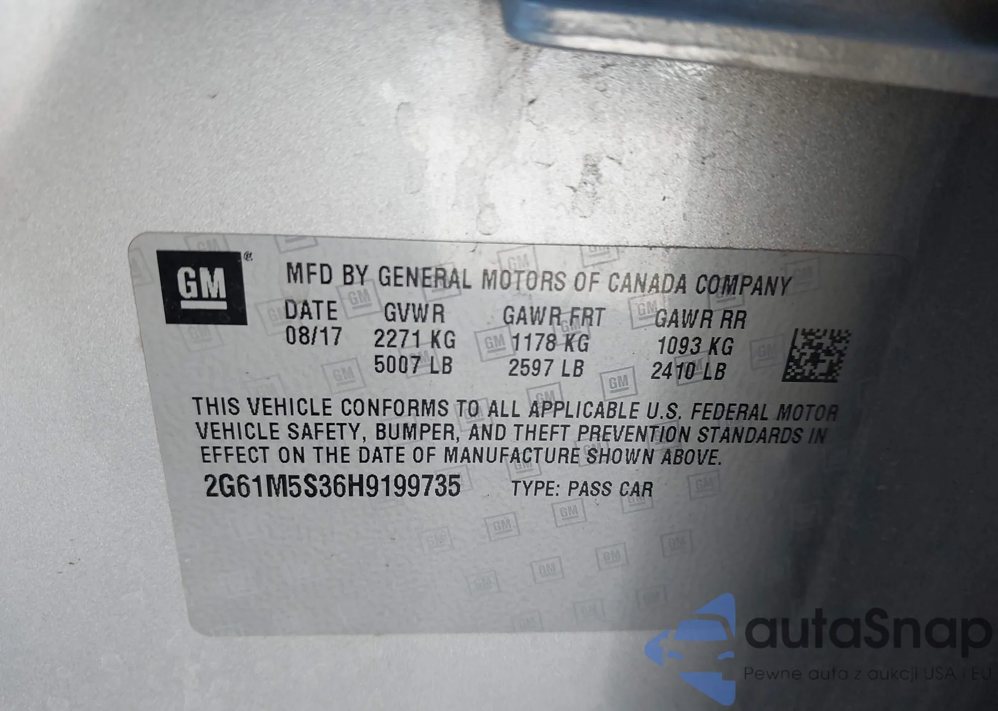 • VIN 2G61M5S36H9199735