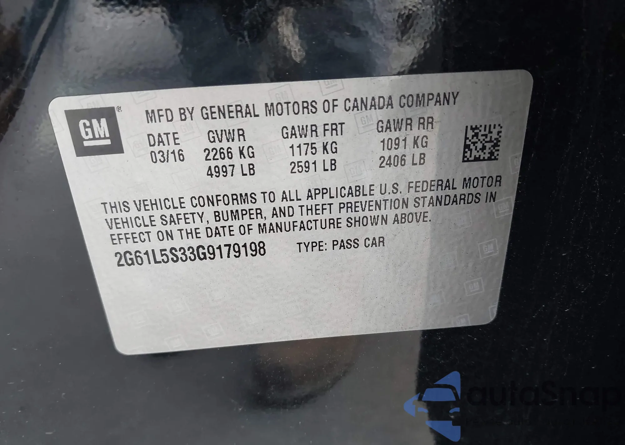 • VIN 2G61L5S33G9179198