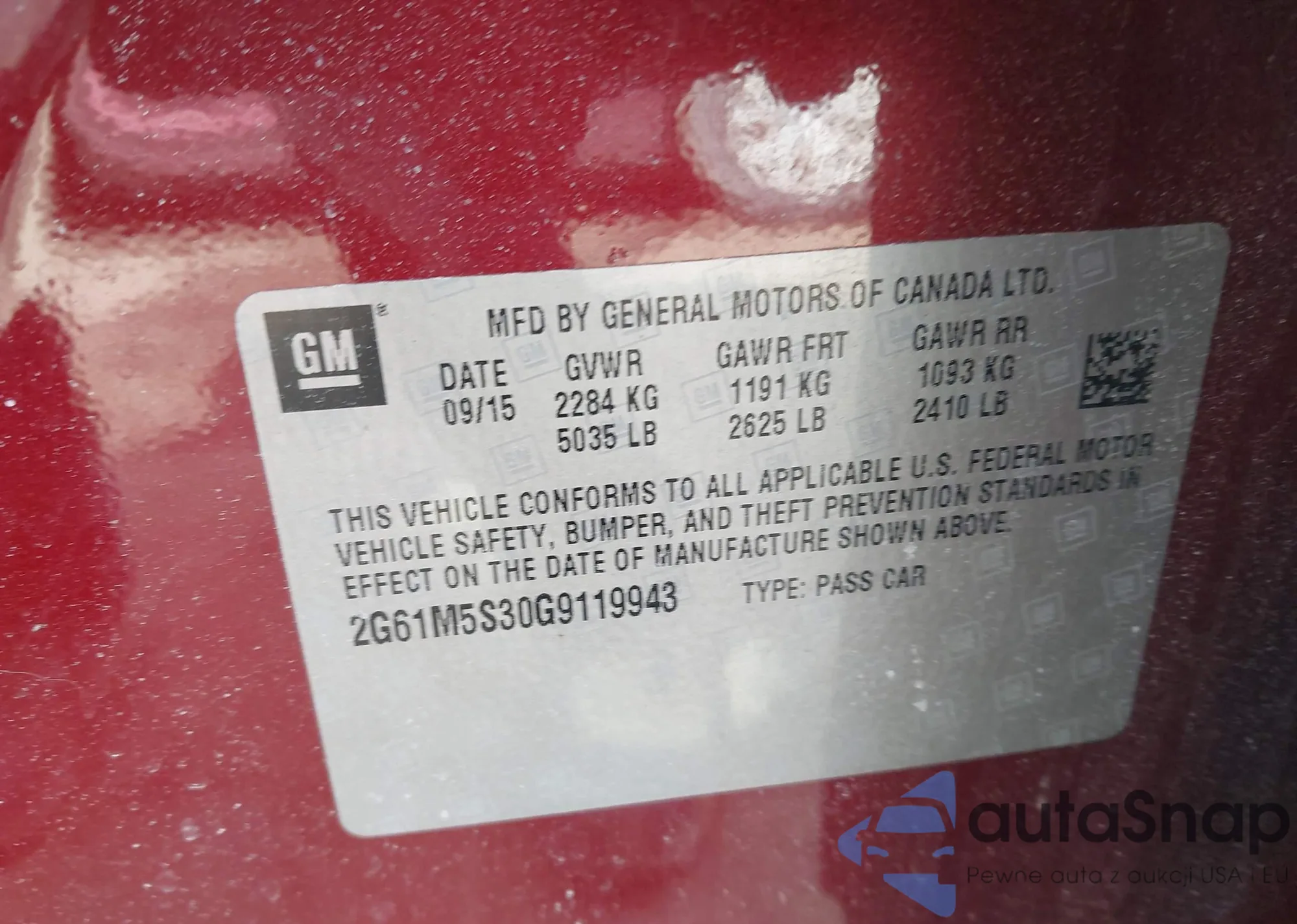 • VIN 2G61M5S30G9119943