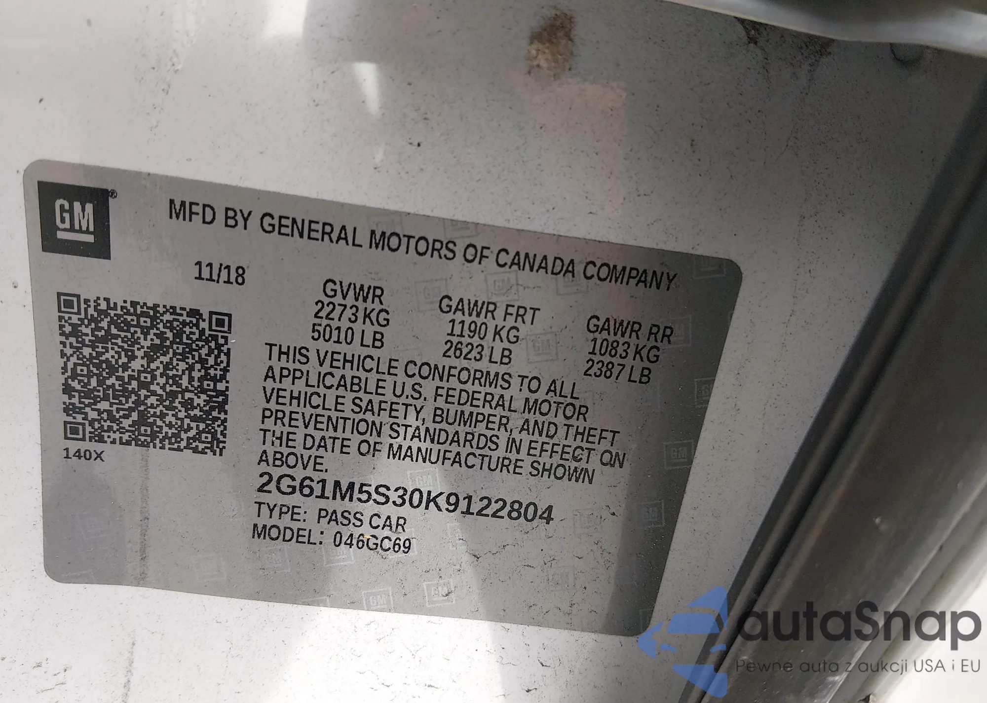 • VIN 2G61M5S30K9122804