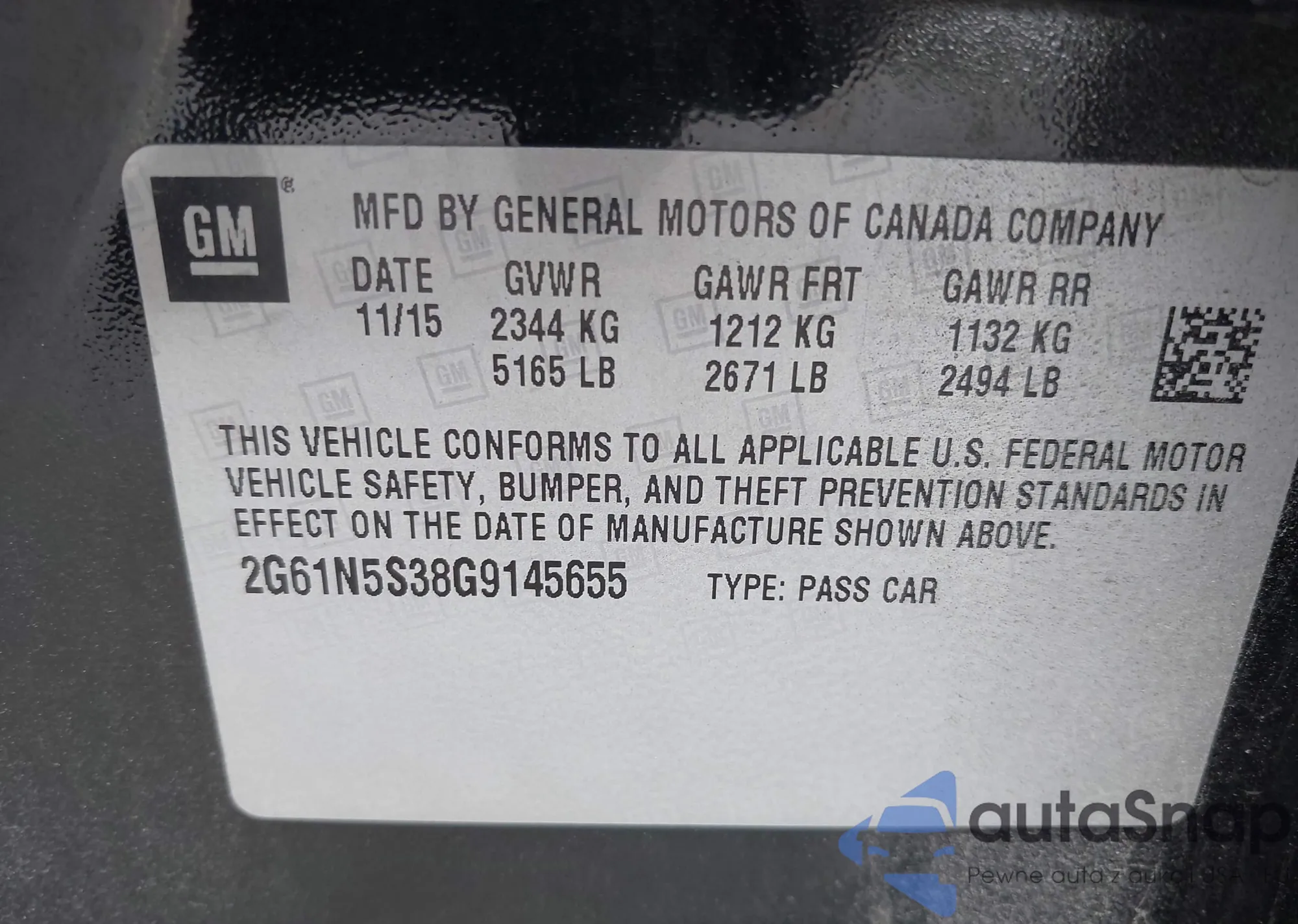 • VIN 2G61N5S38G9145655