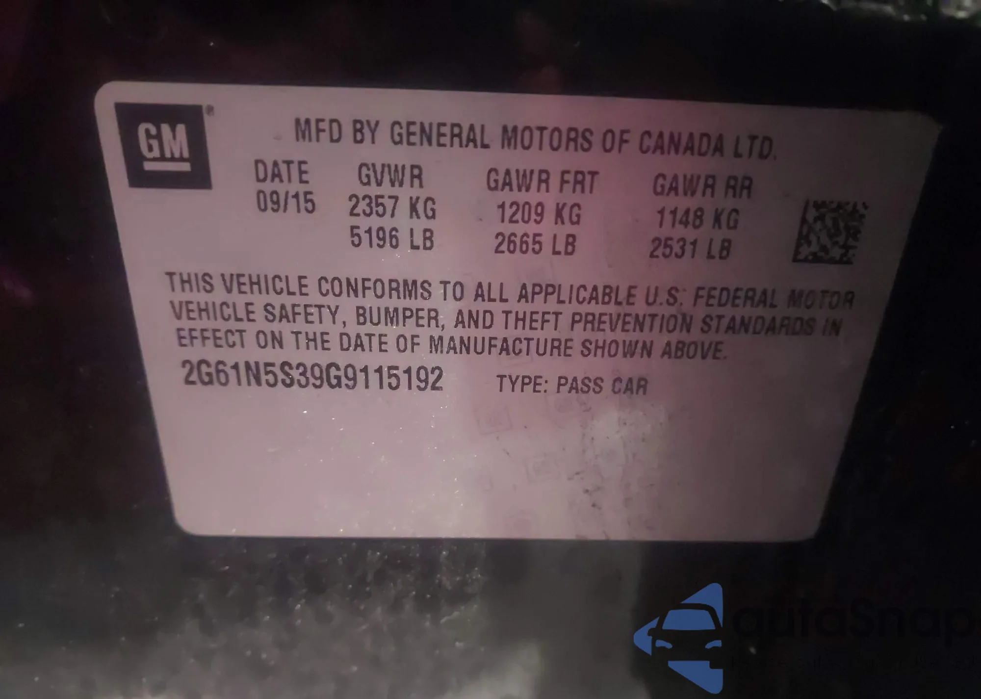 • VIN 2G61N5S39G9115192