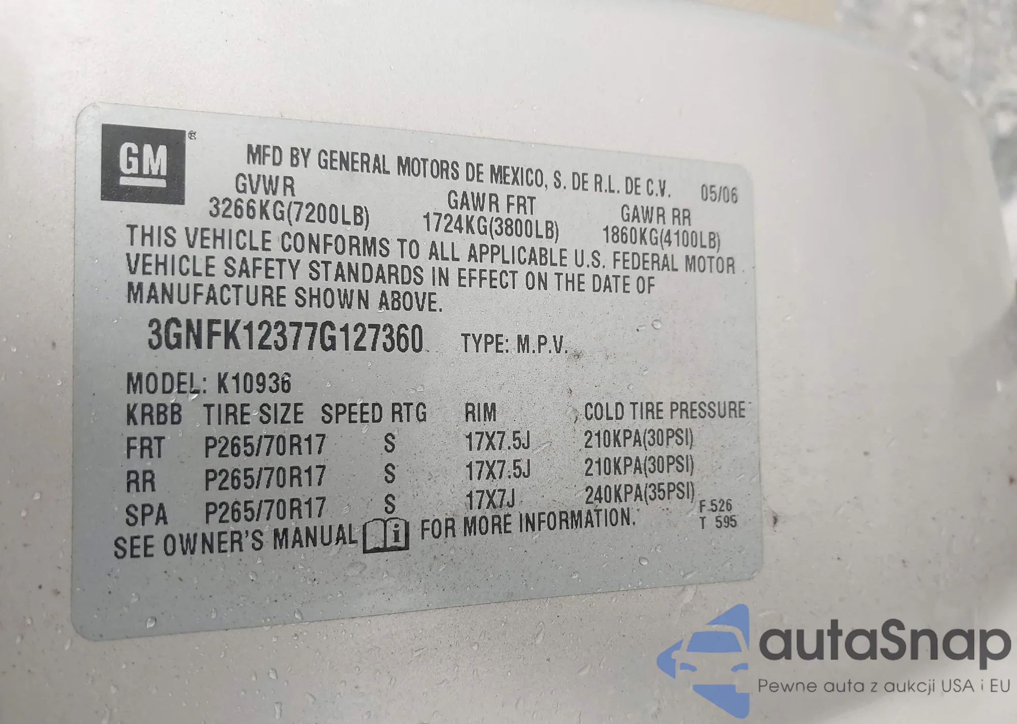 LOT: 78075725 VIN: 3GNFK12327G272614