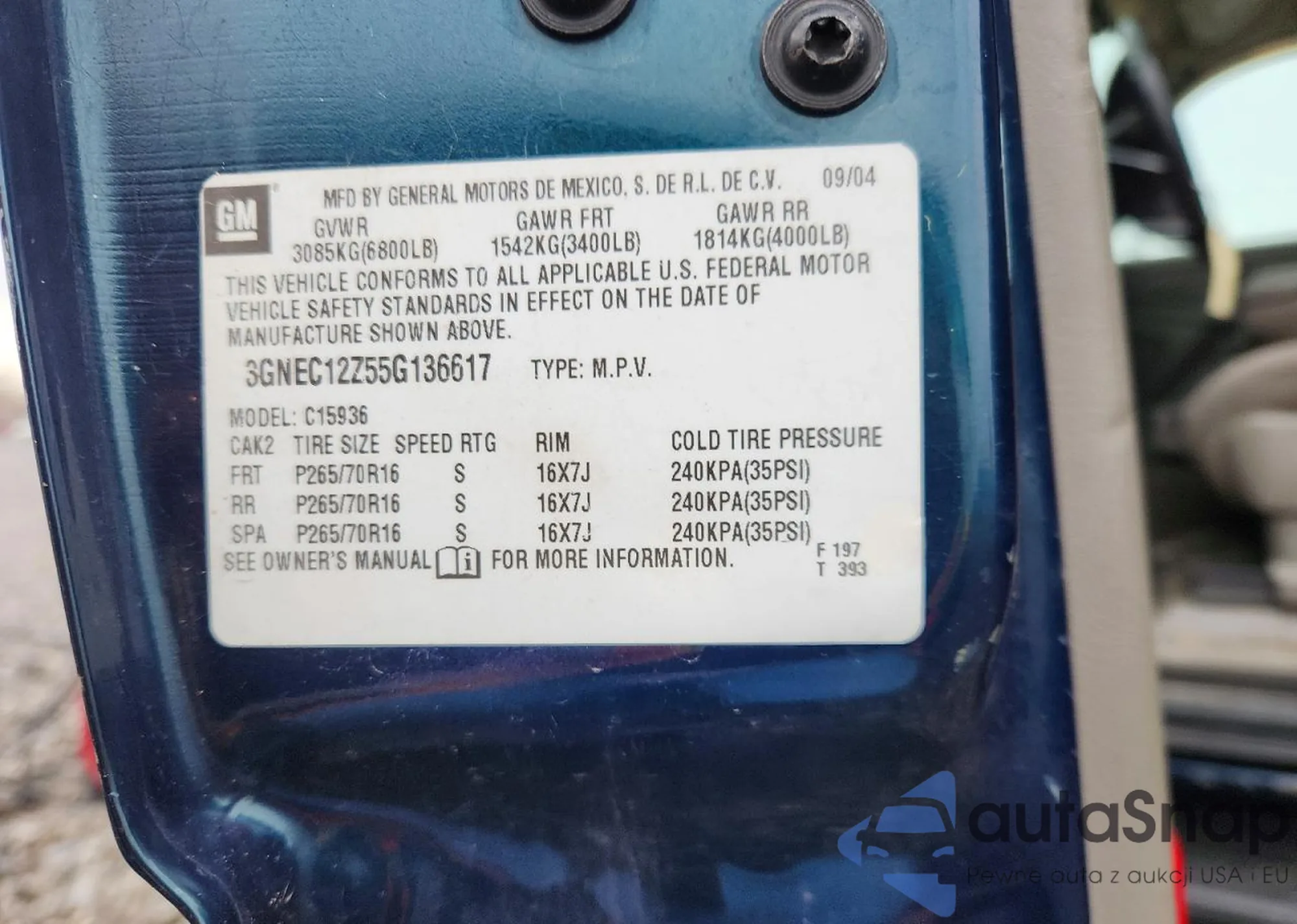 LOT: 78075725 VIN: 3GNFK12327G272614