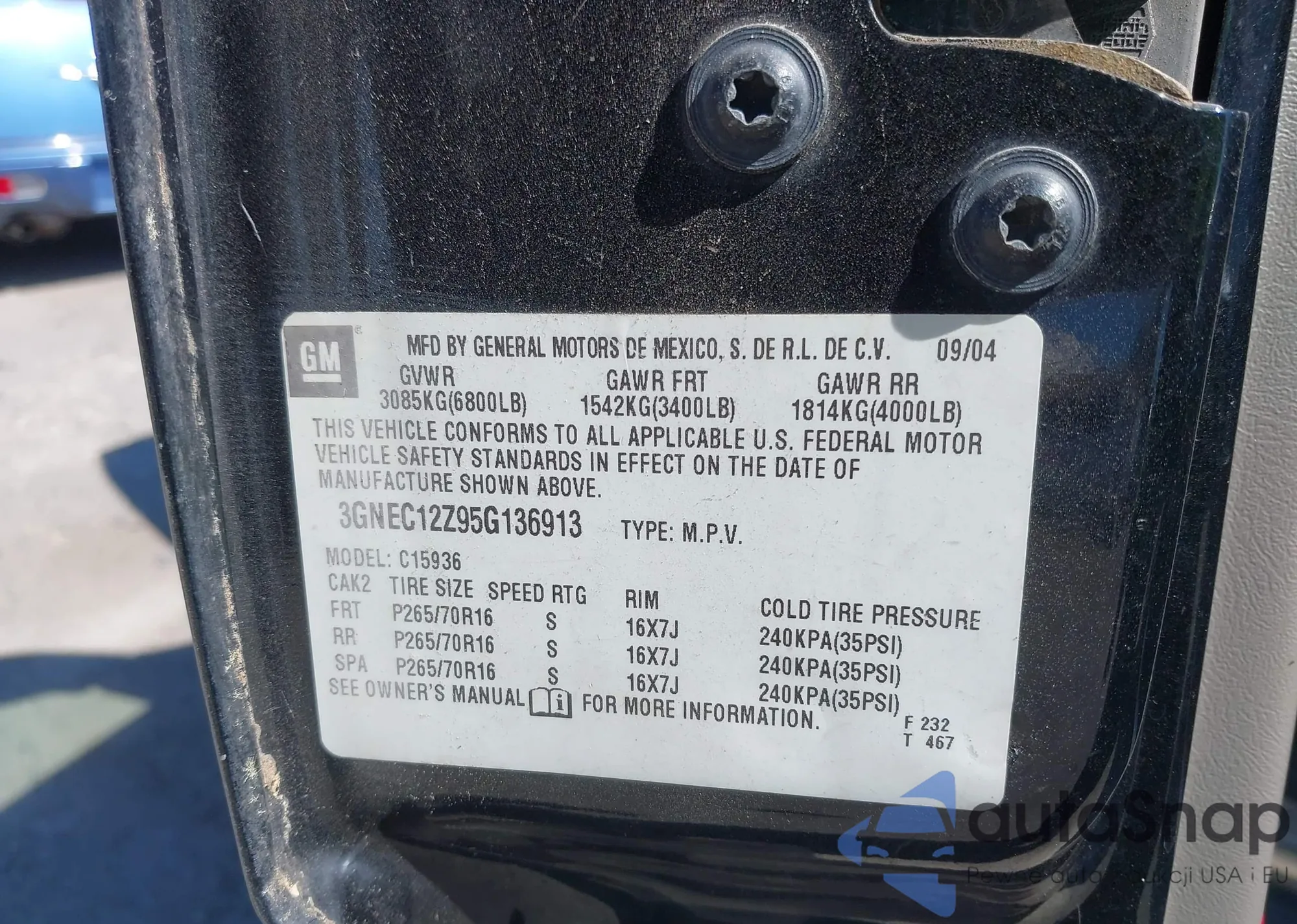 • VIN 3GNEC12Z95G136913