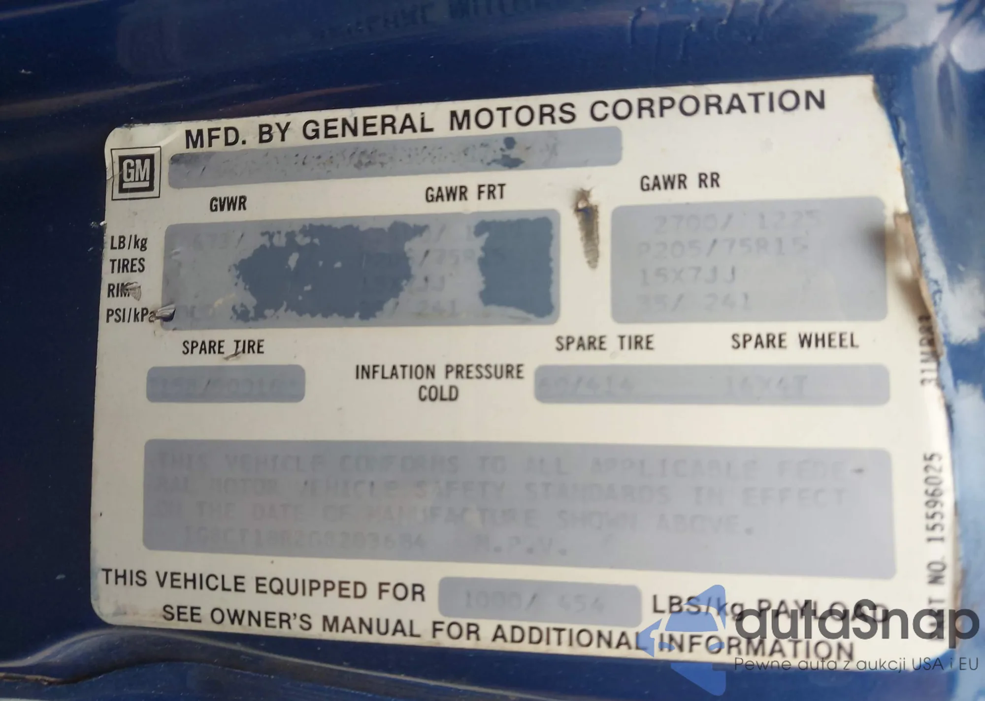 LOT: 44416698 VIN: 1GNCS13W5P2162211