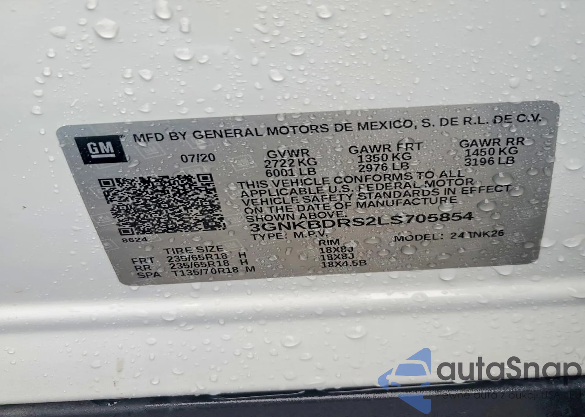 • VIN 3GNKBDRS2LS705854